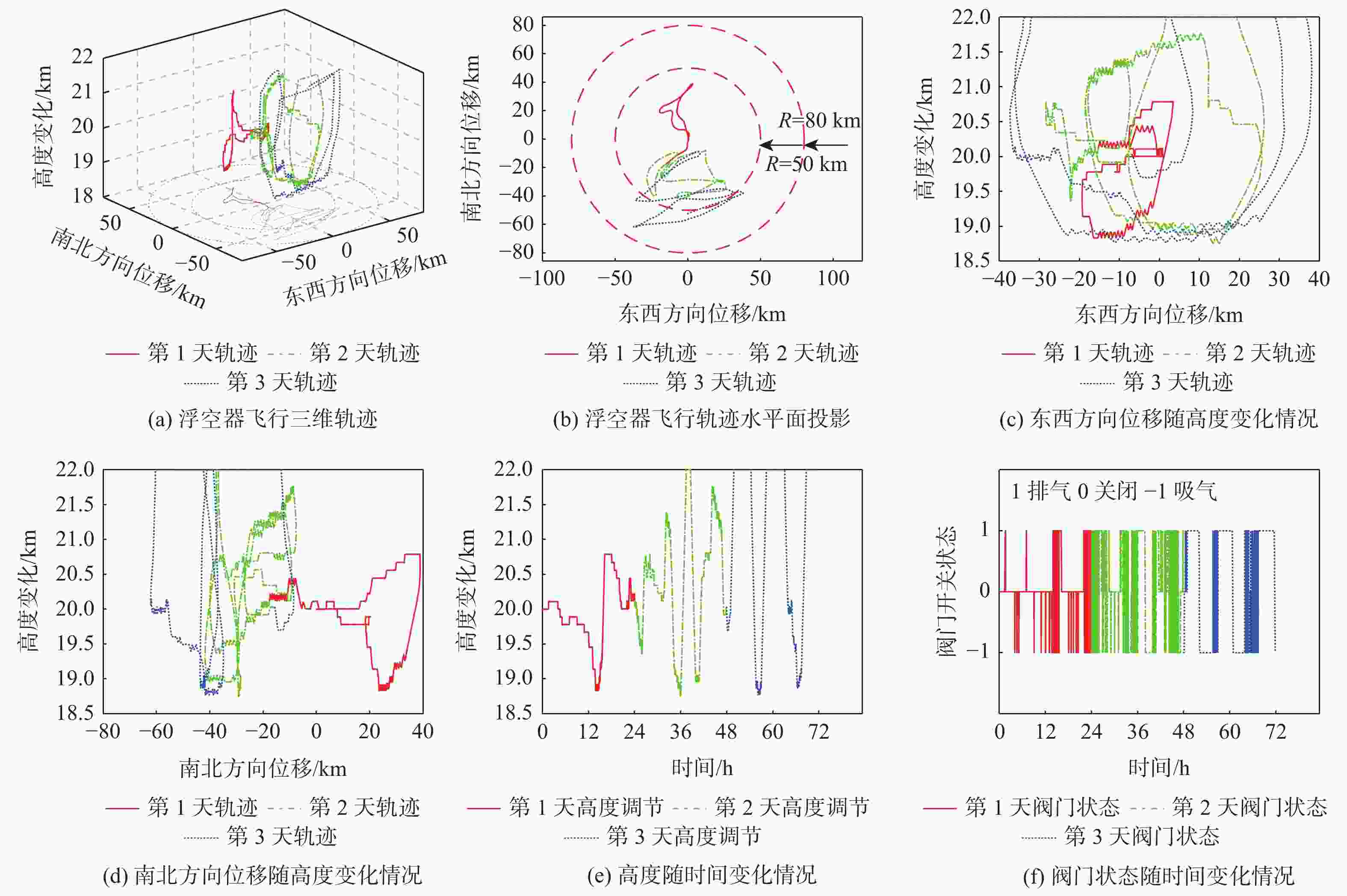 参数 数值 囊体半径/m 8.7 囊体体积/m3 2780 囊体总质量/kg 48 系统总质量/kg 177.2 阀门数量 1 阀门半径/m 0.04 工作高度/km 18~22 表 8 平流层浮空器初始状态