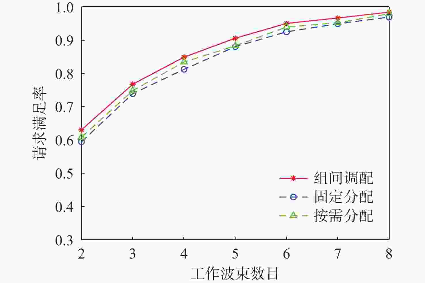 与地面网络设施相比,卫星的机载资源十分有限,面对用户地理位置及流量需求分布的不均匀,传统的固定分组和固定资源分配方式缺乏灵活性,限制了系统容量。基于地理位置的用户分组,利用相控阵天线产生的具有灵活方向和波束宽度的动态波束和跳波的时间分片技术,可以实现对卫星资源的合理分配和高效利用。在低轨多波束卫星场景下,利用P中心问题模拟用户分组问题算法对卫星用户进行分组,实现用户平均信息速率的最大化。基于分组结果提出一套适用于用户分组方案的灵活资源分配算法,并在最后加入一个组间资源调配的过程,以避免空闲资源的浪费。经过实验数据模拟和性能评估,所提算法比传统的用户分组和资源分配算法更能够有效提升系统吞吐量,降低用户平均排队时延。