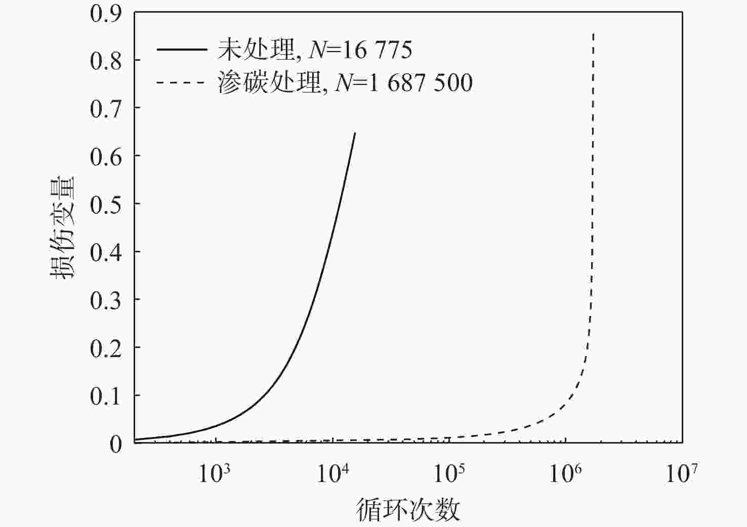 材料 L m M50NiL 1.91×1039 11.66 表 4 渗碳和碳氮复渗表面处理的M50NiL轴承钢试件的疲劳损伤材料参数