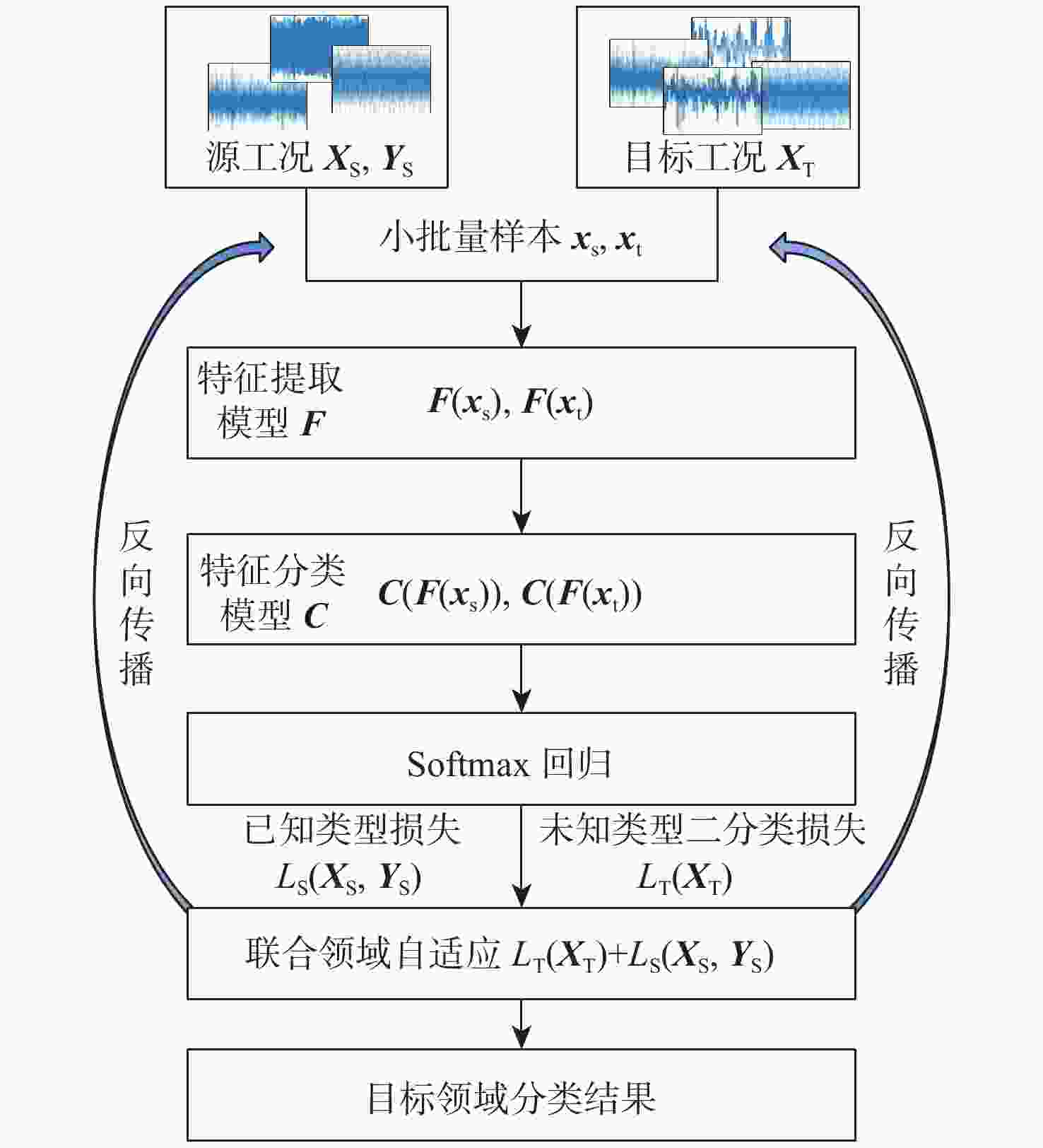 随着工业与航空航天技术的不断发展,齿轮箱等旋转机械的工况与故障模式逐渐趋于多样化、复杂化,可靠性与安全性问题日益突出,大量工况数据缺乏故障标签,且不同工况间故障模式不对称,迫切需要研究有效的故障诊断方法。以齿轮箱为案例验证对象,设置跨工况和开放集故障诊断场景,针对目标工况故障标签匮乏的问题,提出利用迁移学习将源工况的知识迁移到目标工况,利用交叉熵分类损失函数对已知故障类型进行识别的方法;针对跨工况条件下故障模式不对称的开放集问题,提出利用卷积神经网络提取工况间的相似数据特征,利用二分类损失函数对目标工况的已知类与未知类进行分类的方法。提出联合损失函数,训练诊断模型,实现故障特征从源域到目标域的联合迁移。案例分析结果表明:所提方法能够实现开放集情况下的跨工况故障诊断,且平均诊断准确度在90%以上。