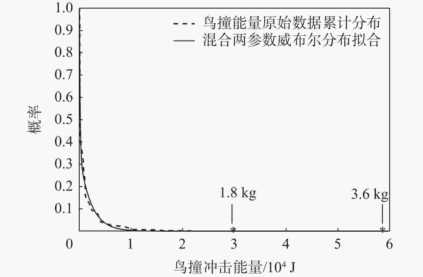 以中国民航近十余年运输类飞机鸟撞信息为数据源,利用混合威布尔函数拟合鸟撞能量分布,并应用列文伯格-马夸尔特(L-M)寻优算法得到更为精确的拟合分布参数估计值。对照安全性指标,通过鸟撞能量分布函数评估出现有鸟撞适航条款对机翼而言是具有充分性和适宜性的,对尾翼而言具有充分性但过于保守。以发生灾难性事故的安全性指标为依据,中国鸟情环境下机翼结构抗鸟撞鸟体质量最低适航要求为1.218 kg;同时验证了美国联邦航空局(FAA)在美国鸟情环境下提高机翼结构抗鸟撞鸟体质量最低适航要求的愿景(约3.6 kg),证明了基于两重两参数混合威布尔分布的鸟撞冲击能量统计分析方法的有效性及结果的可信度,为中国民航自主修订相关适航条款修订提供了理论依据和实践参考。