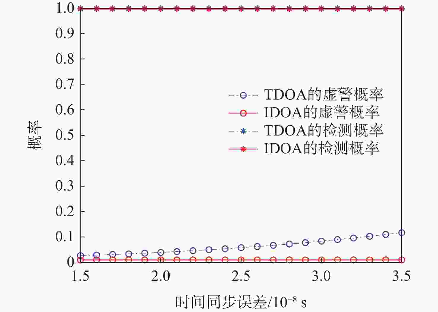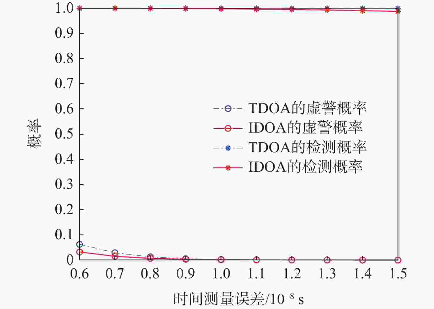 方法 虚警概率 检测概率 TDOA 0.0325 0.9998 IDOA 0.0158 0.9986 -