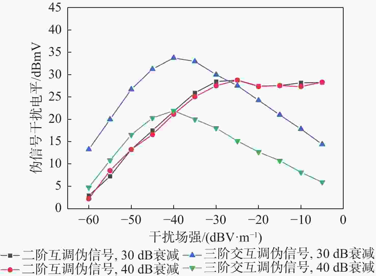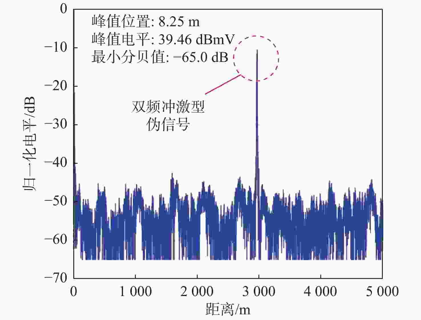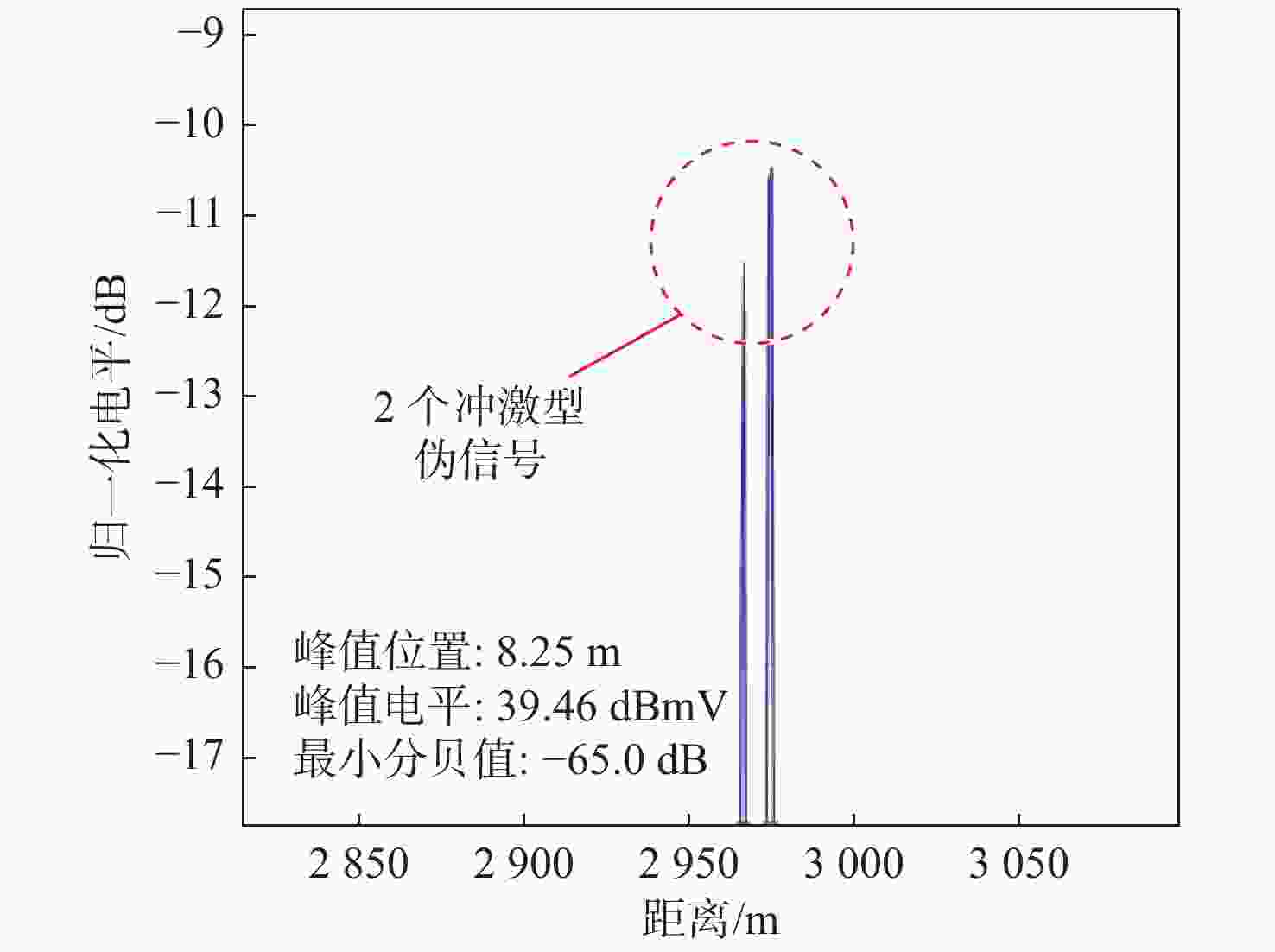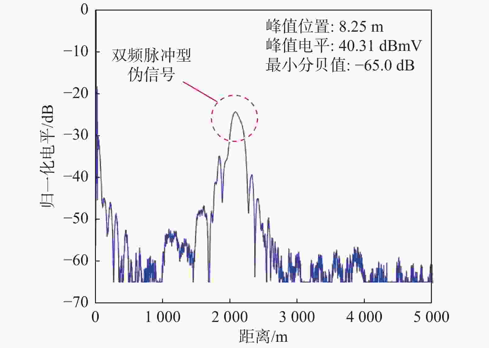 距离/m30 −16 −16 3.08 2893 −13 −13 7.66 4011 −10 −10 12.38 329.4 −7 −7 15.66 1892 −4 −4 15.70 2939 −1 −1 15.84 224.5 40 −15 −15 3.91 3741 −12 −12 9.59 3462 −9 −9 13.69 660.4 −6 −6 15.33 1548 −3 −3 15.59 1254 −1 −1 15.73 2143 表 3 双频二阶互调与三阶交互调冲激型伪信号试验结果