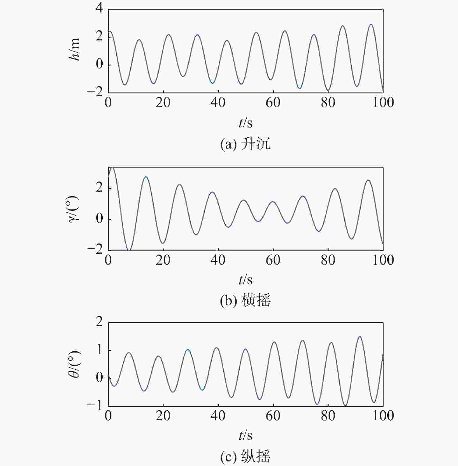 时间/s 升沉MSE/m 纵摇MSE/(°) 横摇MSE/(°) 4 0.024875 0.025589 0.029882 7 0.023695 0.036056 0.027329 10 0.029782 0.039349 0.043956 13 0.06856 0.076037 0.077719 16 0.089719 0.09724 0.095743 19 0.12533 0.14659 0.131588 表 2 舰载机瞬时状态