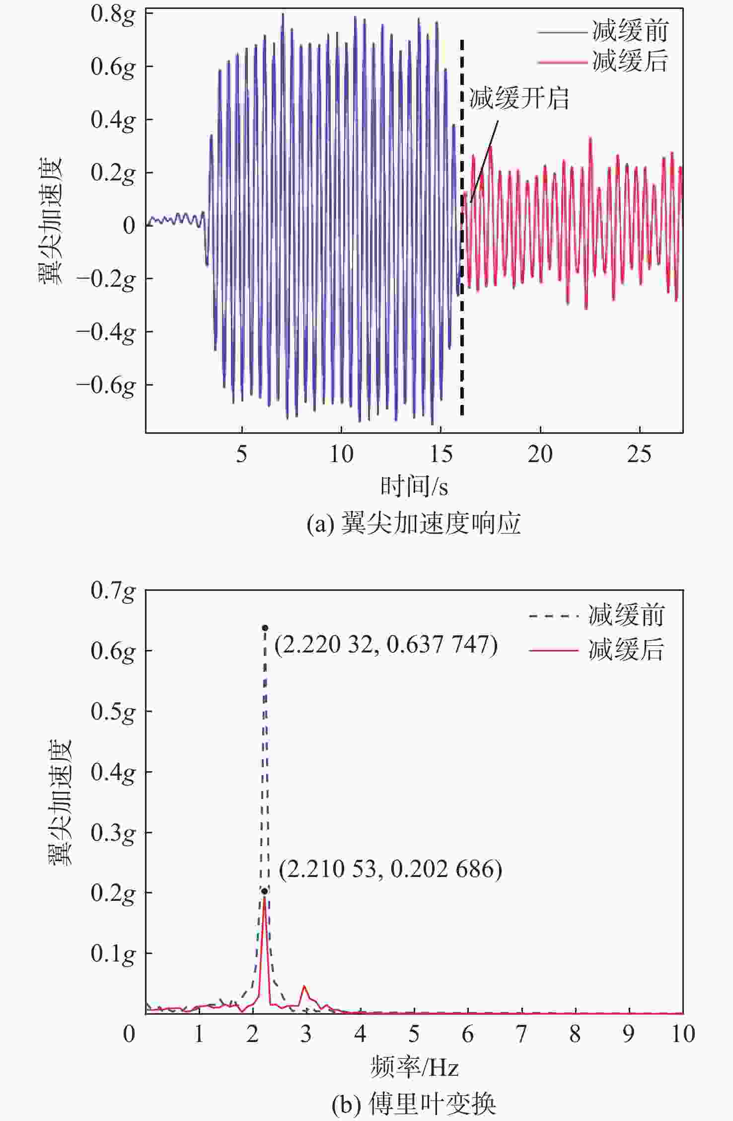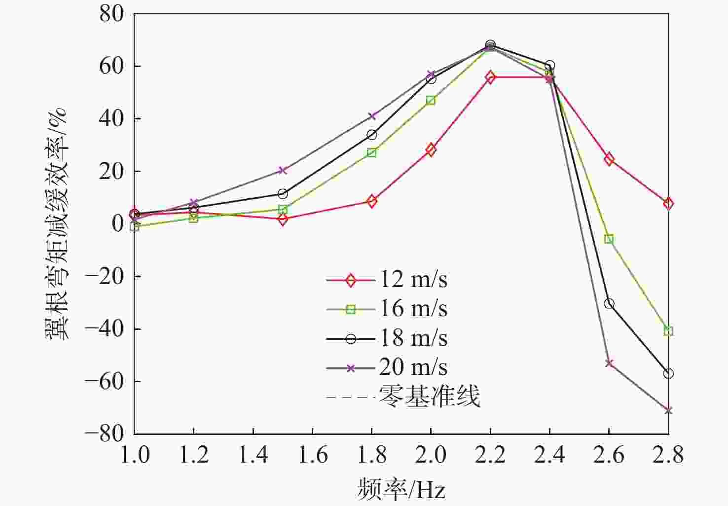 风速/(m·s−1) ${\beta _0}$/(°) ${\beta _1}$/(°) $\cos ({\varphi _0} - {\varphi _1})$ ${F_1}/2{F_0}$ 12 −151 −33 0.469 0.465 16 −198 −33 0.967 1.186 18 −113 −33 −0.171 1.457 20 −94 −33 −0.481 1.705 表 3 2.8 Hz动响应减缓效率分析