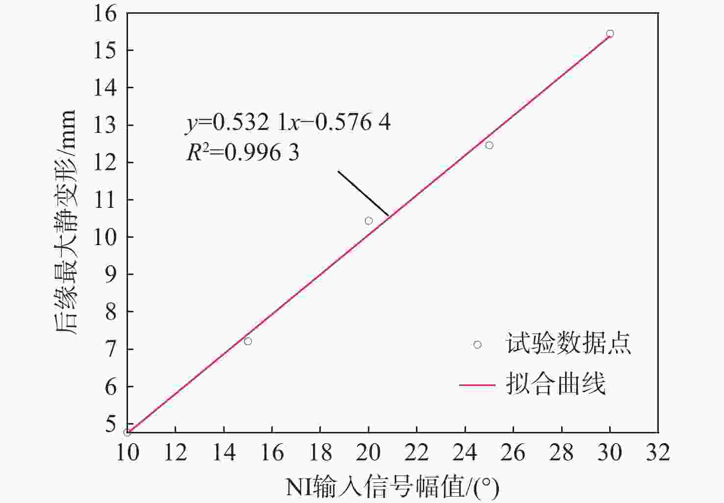 变体飞行器能显著提升飞行器的气动性能,而变弯度柔性后缘是实现变体飞行器的重要方式之一。为探究柔性后缘动态偏转下机翼动响应特性及减缓效率 ,设计了一个变弯度柔性后缘机翼模型并开展了风洞试验。该机翼模型由承弯翼梁和6个3D打印的翼段组成。其中,2个翼段后缘分别设计2个变弯度柔性后缘舵面,这2个舵面分别用于动响应激励和动响应减缓控制。变弯度柔性后缘舵面由数字舵机、柔性索、波纹板结构和聚二甲基硅氧烷(PDMS)柔性蒙皮组成。对变弯度柔性后缘进行地面静态偏转试验和地面动态偏转试验测试,以研究后缘弯度变形规律及舵机动态时滞特性。在此基础上,在低速风洞试验中研究变弯度柔性后缘机翼动响应规律和基于变弯度柔性和闭环反馈控制的动响应减缓效率。风洞试验结果表明:机翼的翼尖加速度响应及翼根弯矩在频率为1.5~4 Hz时先增大后减小,并在接近机翼一弯频率时达到峰值。采用PID控制律和变弯度后缘进行闭环反馈控制后,在风速20 m/s、扰动频率2.2 Hz时翼尖加速度最大减缓效率达到70.18%,翼根弯矩的最大减缓效率为68.14%。此外,还提出了动响应减缓效率为正值的理论公式并分析了动响应减缓效率的影响机制和因素。