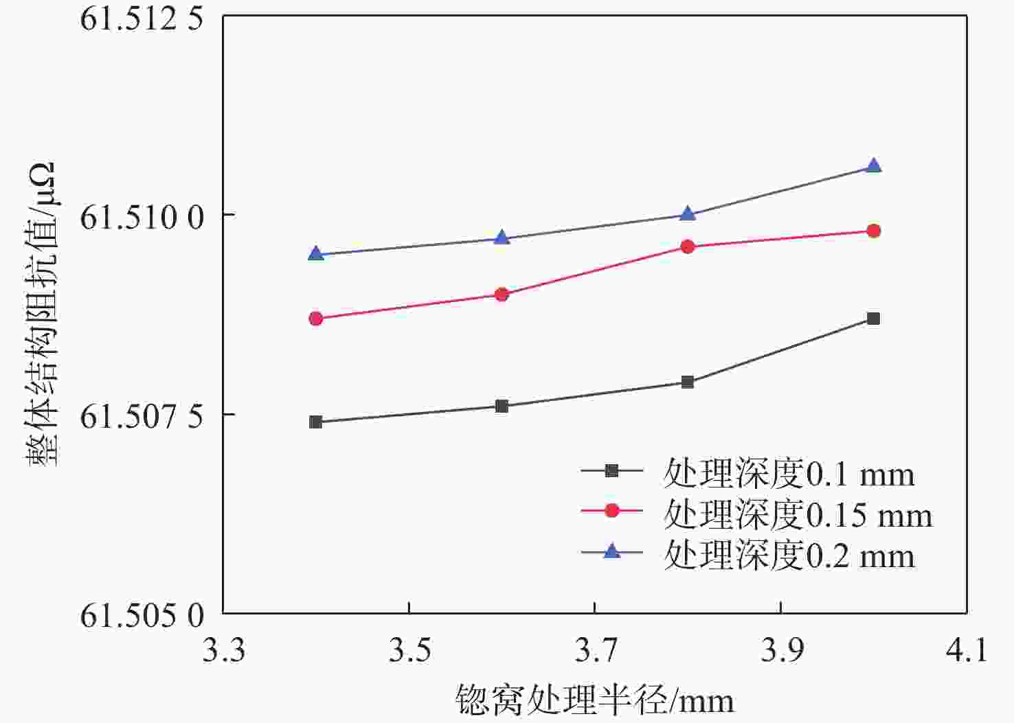 部件名称 材质 电导率/(S·m−1) 延展金属箔 铜 5.998×107 CFRP 碳纤维复合材料 1.5×104 金属氧化膜 氧化铝 0.01 金属连接件 铝 3.03×107 沉头螺栓 钢 4.032×106 凹形垫圈 钛 2.38×106 -