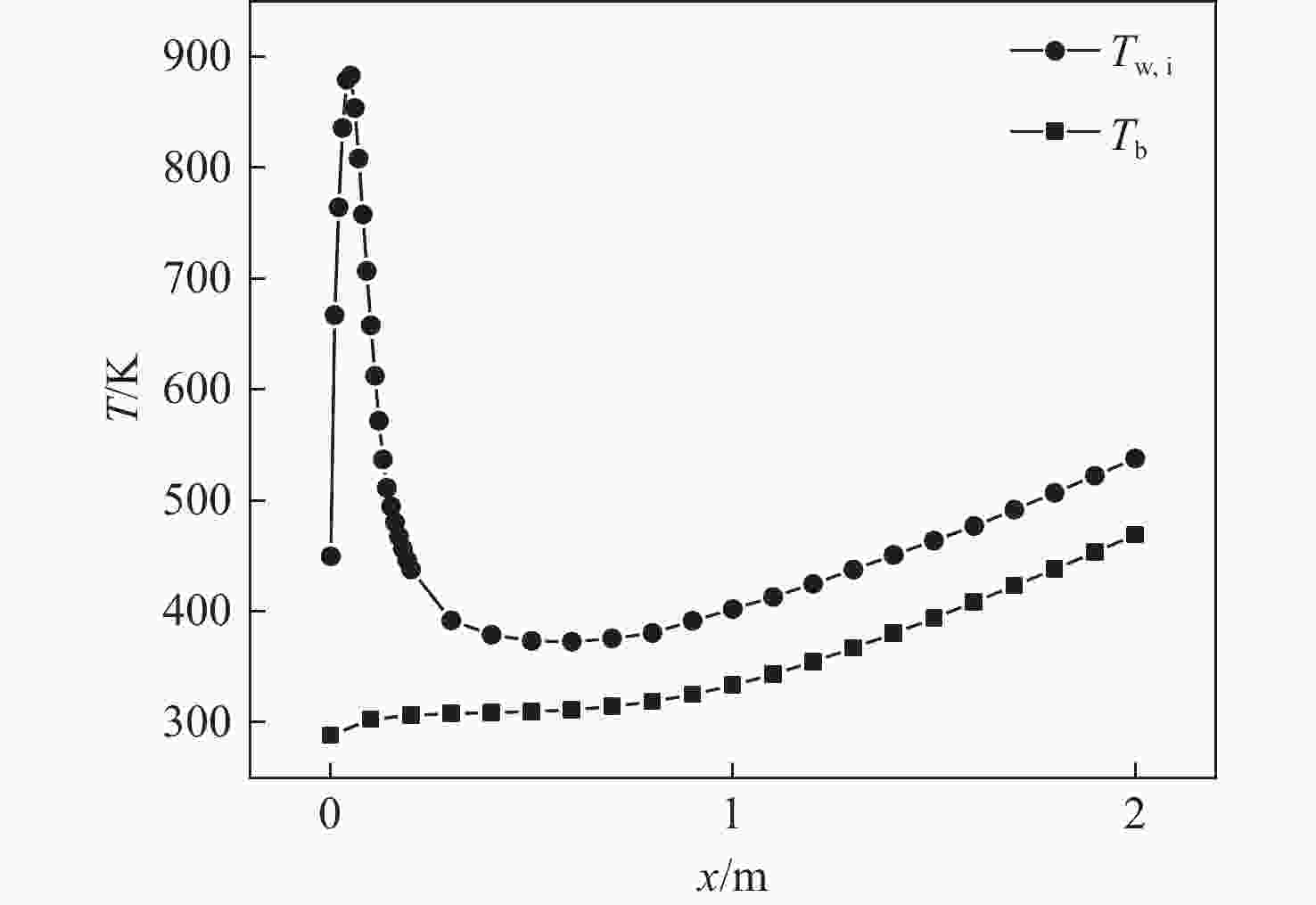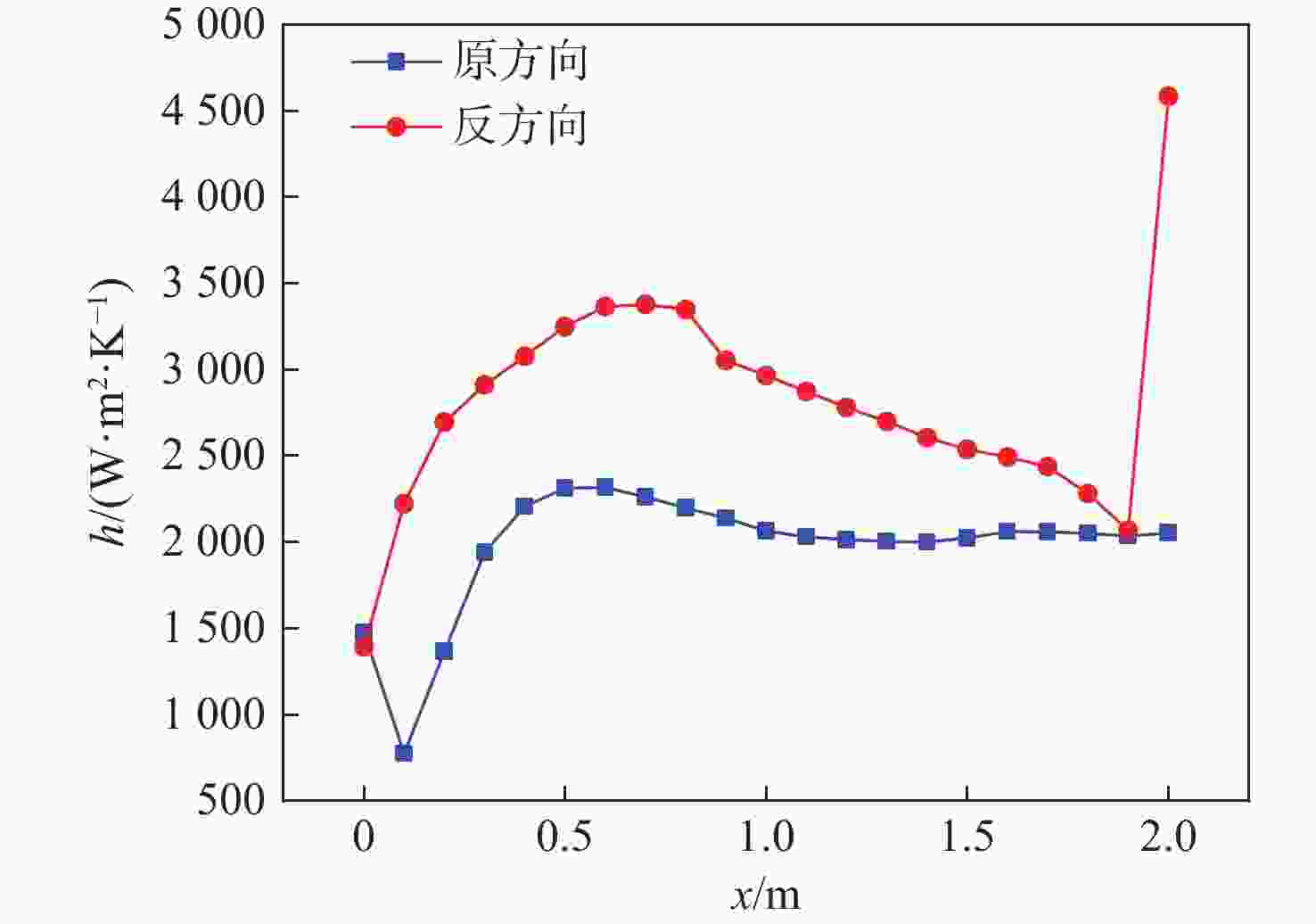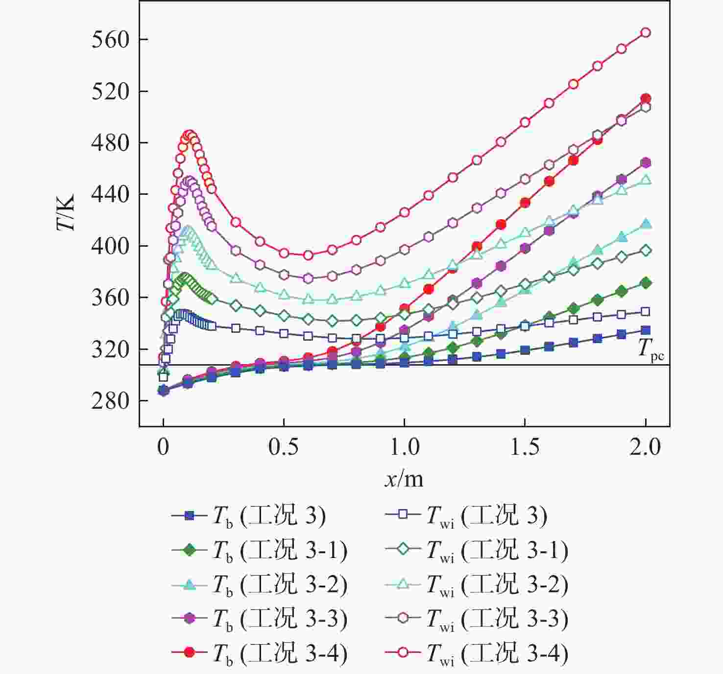 工况编号 q沿程分布/(kW·m−2) q平均值/(kW·m−2) 1 q=32.5 32.5 2 q=−8.125x+40.625 32.5 3 q=−16.25x+48.75 32.5 4 q=−24.375x+56.875 32.5 5 q=−32.5x+65 32.5 表 2 热流密度平均值工况设置