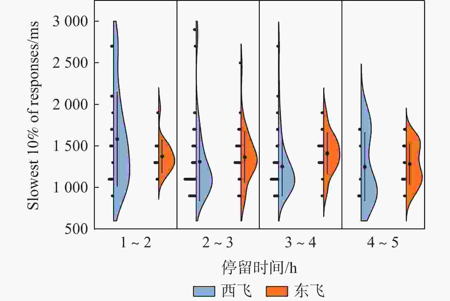 基于疲劳风险管理系统的应用正在全球航空业中迅速展开,在防疫豁免期间,收集实际运行模式下64名国际豁免航班飞行员在不同中转停留时间下的主观自评、客观测试和睡眠信息等数据。运用SPSS27.0统计学软件,利用相关性分析和重复测量方差分析的方法,深入地分析不同中转停留时间及飞行方向对国际豁免航班飞行员警觉性的影响,并用Origin软件绘制相关性系数图和半小提琴图。结果表明:停留时间为1~2 h时,国际豁免航班飞行员的警觉性水平明显较低,向东飞行的飞行员要比向西飞行的警觉性水平更低。这些发现有助于航空公司在防疫豁免运行环境中监测和分析国际豁免航班飞行员的警觉性,为加强中转航班过站保障措施提供借鉴。