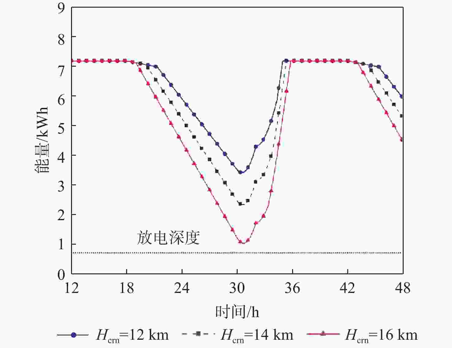 图 14  不同日间巡航高度时储能电池能量