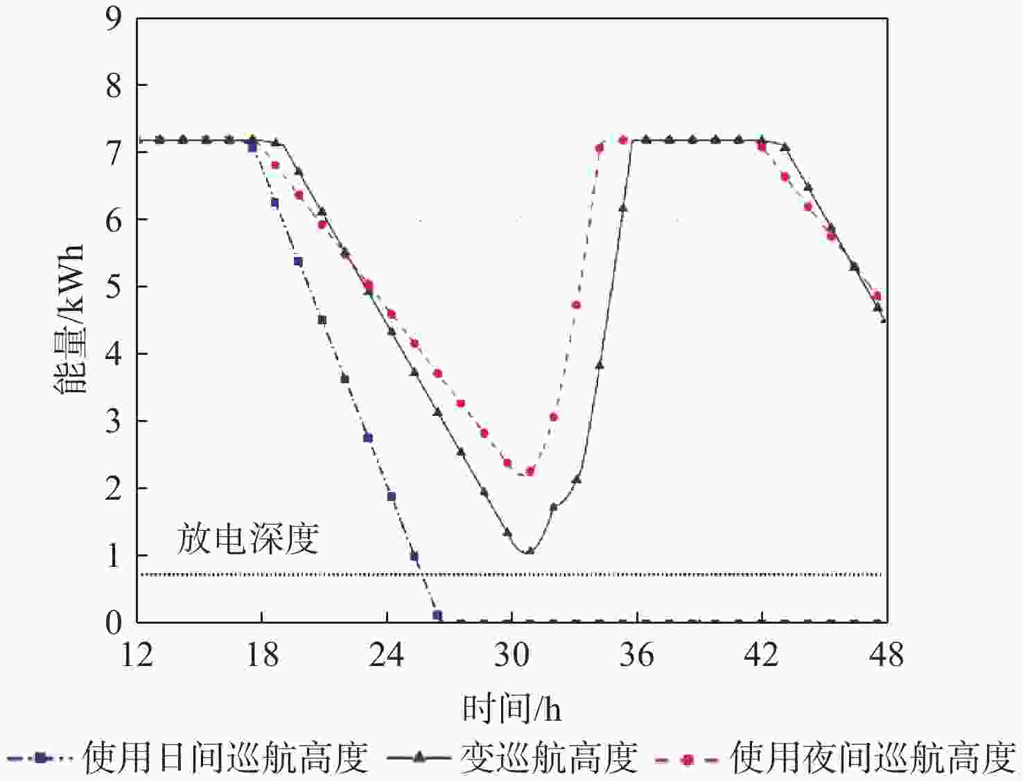 图 15  不同夜间巡航高度时储能电池能量