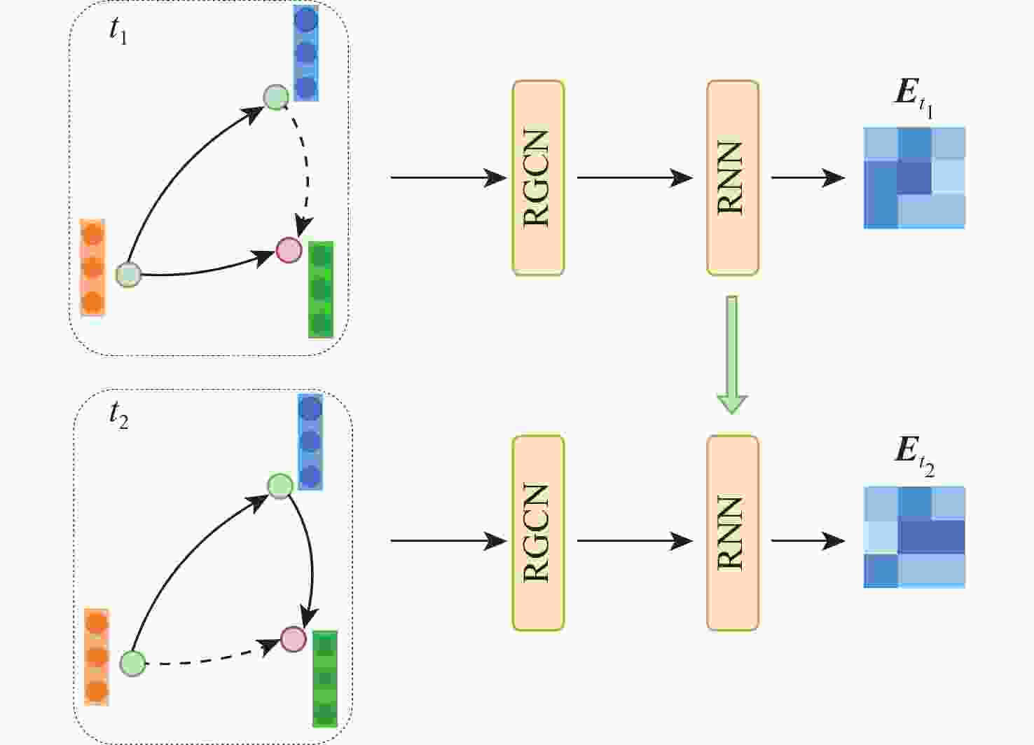 基线模型 MR/% MRR/% Hits@1/% Hits@10/% DisMult[27] 51.37 61.83 50.92 72.38 ConvE[28] 33.83 52.11 36.83 69.24 RotatE[29] 42.82 44.33 48.85 70.76 TA-DistMult[30] 34.23 65.37 53.21 71.72 HyTE[31] 42.78 53.49 56.19 72.25 Dyngraph2vecAE[32] 36.72 50.02 59.72 70.82 tNodeEmbed[33] 41.83 62.38 50.48 71.63 EvolveGCN[34] 32.28 62.82 54.05 72.32 GCRN[35] 36.83 52.23 51.21 76.22 Know-Evolve[36] 44.32 66.73 51.92 75.38 DyRep[37] 35.83 54.35 44.83 69.24 RE-Net[38] 35.73 68.77 56.48 70.58 本文模型 21.34 68.22 57.82 82.50 表 5 消融实验结果