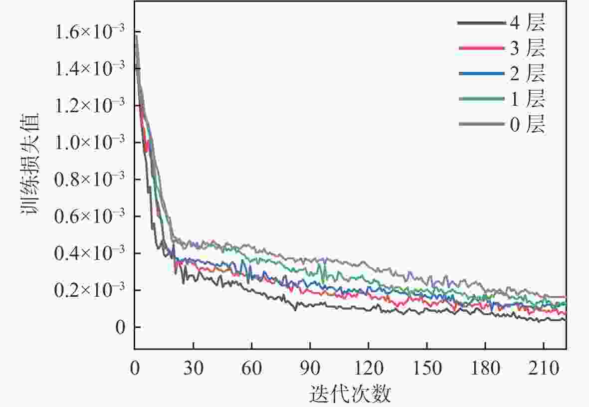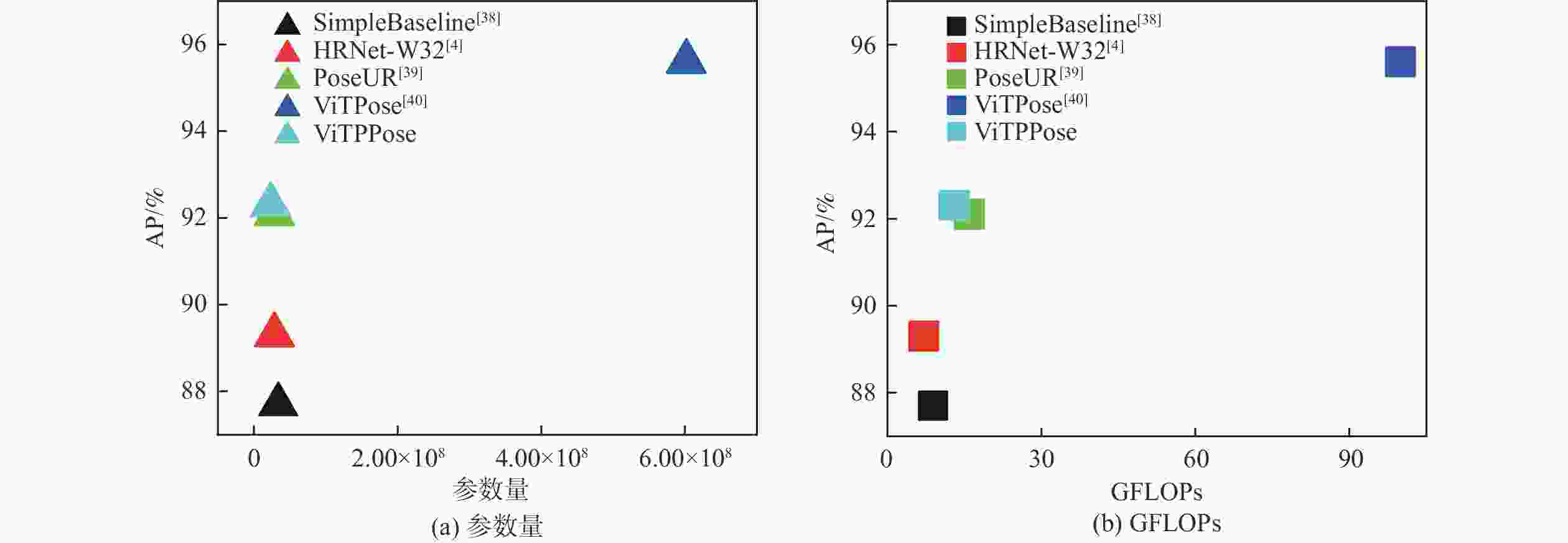 模型 主干网络 输入尺寸/像素 参数量 GFLOPs AP/% AP50/% AP75/% APM/% AR/% SimpleBaseline[38] ResNet-50 256×192 3.40×107 8.90 87.7 89.9 89.1 85.3 87.8 SimpleBaseline[38] ResNet-152 384×288 6.86×107 35.6 89.4 91.0 91.1 87.8 88.2 HRNet-W32[4] HRNet-W32 256×192 2.85×107 7.10 89.3 91.4 91.3 87.3 86.9 HRNet-W32[4] HRNet-W32 384×288 2.85×107 16.0 90.6 92.5 93.6 90.9 92.5 PoseUR[39] HRFormer-B 256×192 2.88×107 12.6 92.1 93.6 91.8 93.0 93.8 ViTPose[40] ViTAE-H 256×192 6.32×108 95.6 95.2 94.3 95.6 96..4 ViTPPose HRNet-S-W32 256×192 2.35×107 13.0 92.3 93.5 92.5 92.6 93.5 表 2 模型使用不同编码层数目在飞行员关键点检测测试数据集上的性能比较