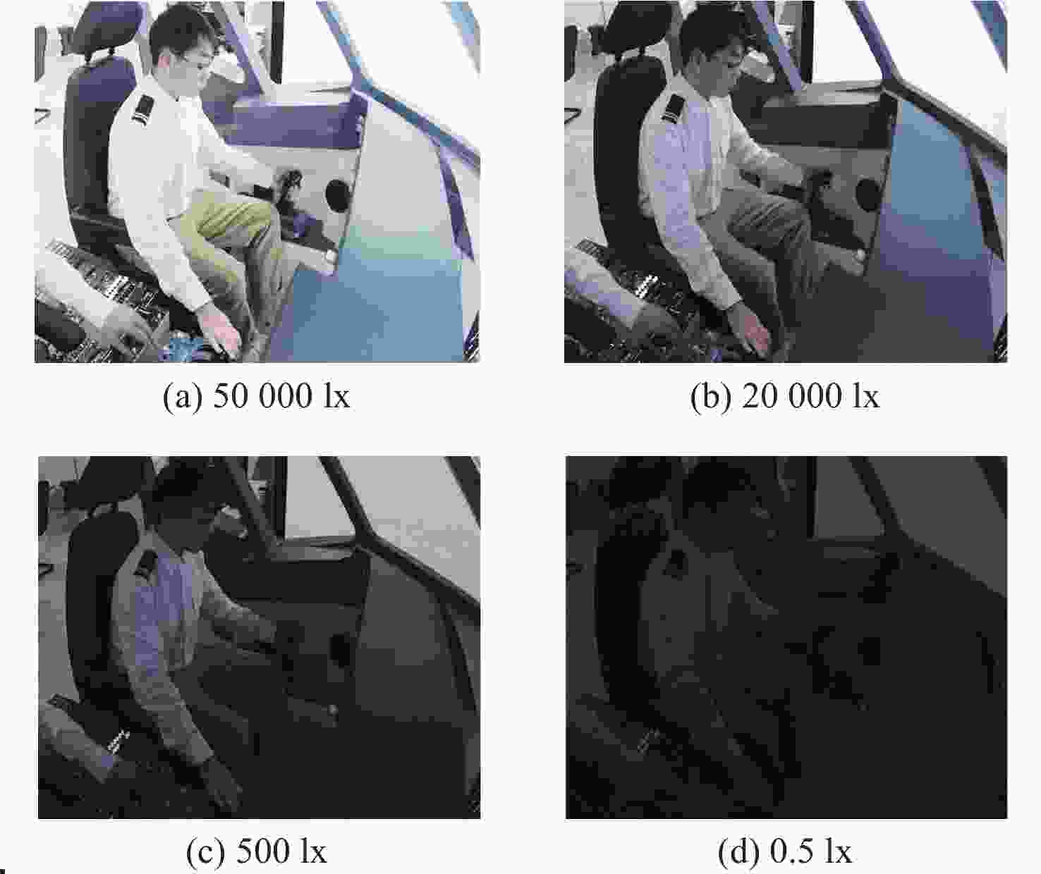 模型 输入尺寸/像素 参数量 GFLOPs AP/% ViTPPose* 256×192 2.28×107 12.6 91.8 ViTPPose& 256×192 2.35×107 13.0 92.0 ViTPPose$ 256×192 2.36×107 13.0 91.5 ViTPPose 256×192 2.35×107 13.0 92.3 表 4 本文模型在4种级别光照强度等级下飞行员关键点测试数据集上的性能比较
