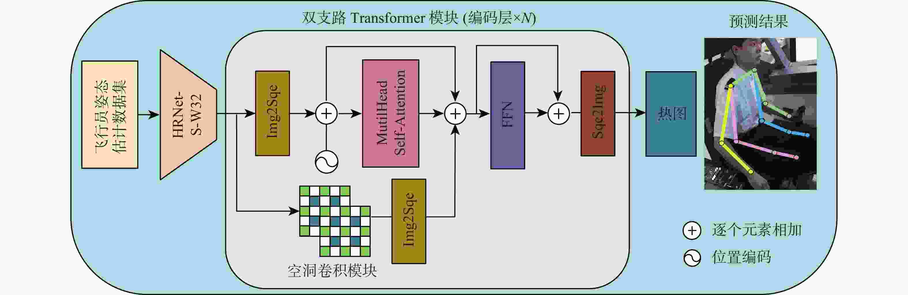 编码层数目 输入尺寸/像素 参数量 GFLOPs AP/% 0 256×192 2.15×107 6.2 90.3 1 256×192 2.20×107 7.9 90.7 2 256×192 2.24×107 9.6 91.3 3 256×192 2.29×107 11.3 92.0 4 256×192 2.35×107 13.0 92.3 表 3 模型使用空洞卷积模块在飞行员关键点测试数据集上的性能比较