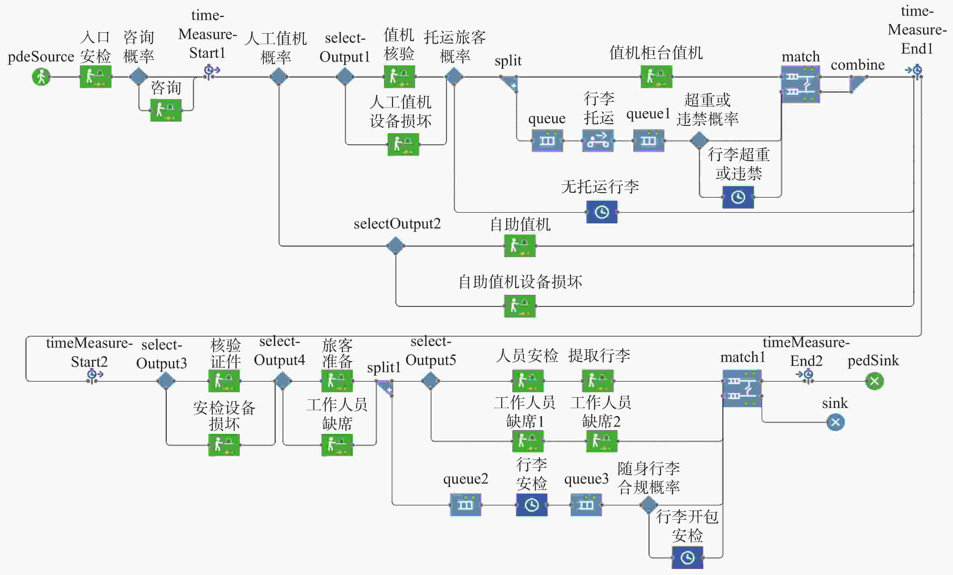 [1] BRUNEAU M, CHANG S E, EGUCHI R T, et al. A framework to quantitatively assess and enhance the seismic resilience of communities[J]. Earthquake Spectra, 2003, 19(4): 733-752. doi: 10.1193/1.1623497 [2] CLARK K L, BHATIA U, KODRA E A, et al. Resilience of the U. S. national airspace system airport network[J]. IEEE Transactions on Intelligent Transportation Systems, 2018, 19(12): 3785-3794. doi: 10.1109/TITS.2017.2784391 [3] 王兴隆, 刘洋. 航空多层网络弹性测度与分析[J]. 复杂系统与复杂性科学, 2020, 17(2): 31-38.WANG X L, LIU Y. Resilience measurement and analysis of aviation multi-layer network[J]. Complex Systems and Complexity Science, 2020, 17(2): 31-38(in Chinese). [4] 郭九霞. 新一代民航运输系统安全韧性理论与方法研究[D]. 成都: 电子科技大学, 2021.GUO J X. Research on safety resilience theory and method for next generation air transportation system[D]. Chengdu: University of Electronic Science and Technology of China, 2021(in Chinese). [5] HUANG C N, LIOU J J H, LO H W, et al. Building an assessment model for measuring airport resilience[J]. Journal of Air Transport Management, 2021, 95: 102101. doi: 10.1016/j.jairtraman.2021.102101 [6] BAO D W, ZHANG X L. Measurement methods and influencing mechanisms for the resilience of large airports under emergency events[J]. Transportmetrica A: Transport Science, 2018, 14(10): 855-880. doi: 10.1080/23249935.2018.1448016 [7] 黄润建. 基于风险交互分析的4F机场灾害韧性评价研究[D]. 广州: 暨南大学, 2020.HUANG R J. Research on 4F airport disaster resilience evaluation based on risk interaction analysis[D]. Guangzhou: Jinan University, 2020(in Chinese). [8] 胡明伟, 黄文柯. 行人交通仿真方法与技术[M]. 北京: 清华大学出版社, 2016: 75-79.HU M W, HUANG W K. Pedestrian traffic simulation method and technology[M]. Beijing: Tsinghua University Press, 2016: 75-79(in Chinese). [9] HOLLING C S. Resilience and stability of ecological systems[J]. Annual Review of Ecology and Systematics, 1973, 4: 1-23. doi: 10.1146/annurev.es.04.110173.000245 [10] 欧阳虹彬, 叶强. 弹性城市理论演化述评: 概念、脉络与趋势[J]. 城市规划, 2016, 40(3): 34-42. doi: 10.11819/cpr20160306aOUYANG H B, YE Q. A review on the evolution of resilient city theory: Concept, context and tendency[J]. City Planning Review, 2016, 40(3): 34-42(in Chinese). doi: 10.11819/cpr20160306a [11] 李明捷. 机场规划与设计[M]. 北京: 中国民航出版社, 2015: 280-282.LI M J. Airport planning and design[M]. Beijing: China Civil Aviaiton Press, 2015: 280-282(in Chinese). [12] 王加冕, 陶翼飞, 罗俊斌, 等. 基于蒙特卡洛仿真的机场值机系统优化研究[J]. 软件导刊, 2021, 20(8): 82-86. doi: 10.11907/rjdk.202377WANG J M, TAO Y F, LUO J B, et al. Optimization of airport check-in system based on Monte Carlo simulation[J]. Software Guide, 2021, 20(8): 82-86(in Chinese). doi: 10.11907/rjdk.202377 [13] 吴忠君. 航站楼旅客离港服务流程建模与仿真[D]. 哈尔滨: 哈尔滨工业大学, 2013: 61-63.WU Z J. The departing service processes in terminal modeling and simulation[D]. Harbin: Harbin Institute of Technology, 2013: 61-63(in Chinese). [14] 张浩. 航站楼离港旅客流程仿真及优化研究[D]. 广汉: 中国民用航空飞行学院, 2018: 34-36.ZHANG H. Simulation and optimization of passenger flow in terminal building[D]. Guanghan: Civil Aviation Flight University of China, 2018: 34-36(in Chinese). [15] 赵振武, 李新源. 基于Anylogic的机场旅客安检流程仿真与优化[J]. 中国民航大学学报, 2018, 36(5): 52-55. doi: 10.3969/j.issn.1674-5590.2018.05.011ZHAO Z W, LI X Y. Simulation and optimization of airport passenger security screening process based on Anylogic[J]. Journal of Civil Aviation University of China, 2018, 36(5): 52-55(in Chinese). doi: 10.3969/j.issn.1674-5590.2018.05.011 [16] COMES T, WARNIER M, FEIL W, et al. Critical airport infrastructure disaster resilience: A framework and simulation model for rapid adaptation[J]. Journal of Management in Engineering, 2020, 36(5): 04020059. doi: 10.1061/(ASCE)ME.1943-5479.0000798 -