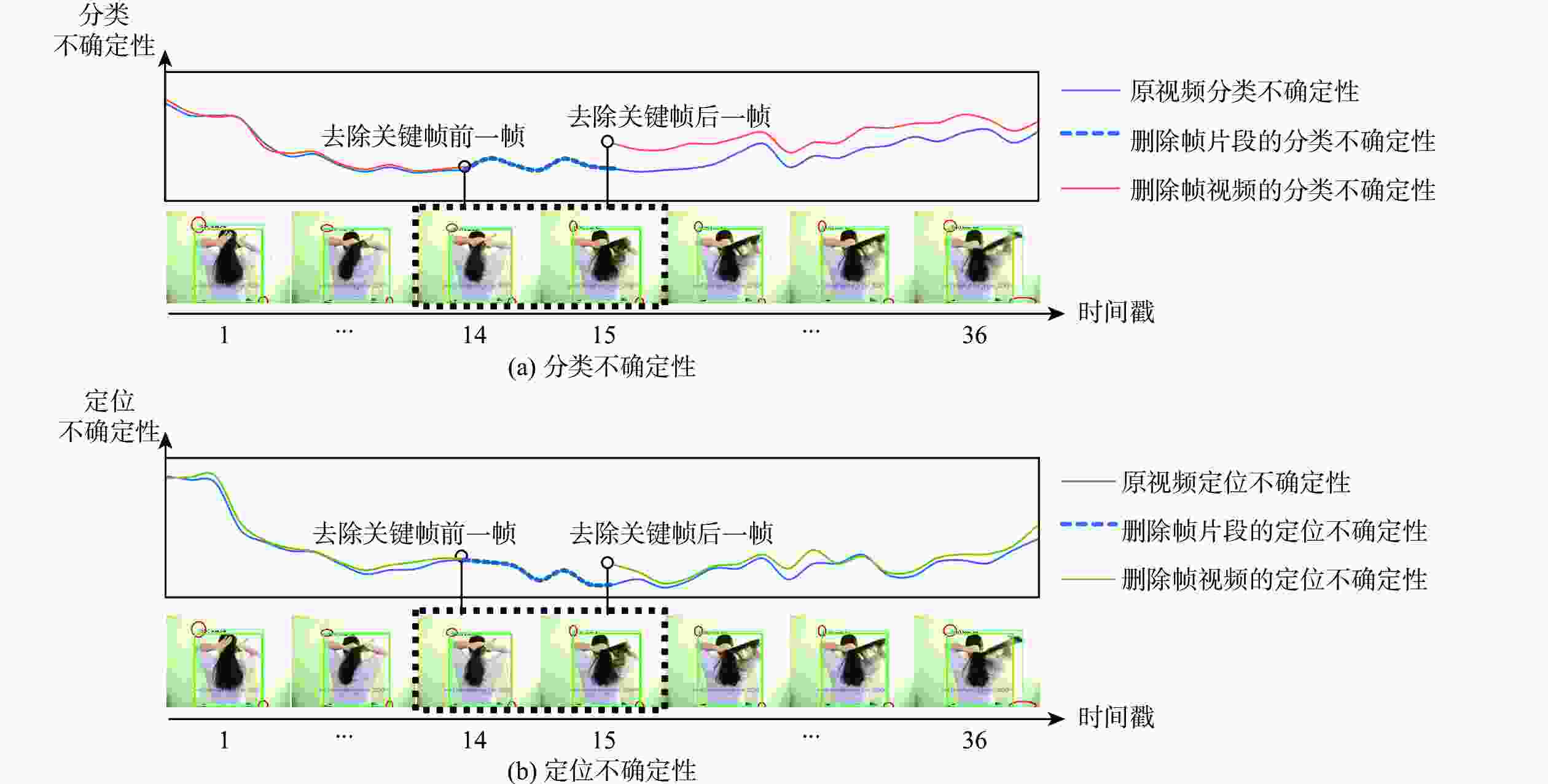 近年来,视频事件检测在计算机视觉领域受到了越来越多的关注。不确定性估计可以在输出检测结果不可靠时提醒决策系统或人员,从而减少决策失误。将不确定性估计引入事件检测任务,提出一种融合不确定性估计的端到端视频事件检测算法。该算法对预测视频事件的定位不确定性和分类不确定性进行估计,通过降低网络预测的不确定性优化网络性能。将不确定性估计和非极大值抑制策略相结合,进一步筛选出高质量预测框。实验结果表明:添加不确定性分支可提升模型的性能。在J-HMDB-21数据集上,所提算法在mAP50检测指标上相比先进算法提升了0.8%。在时空局部原子视觉(AVA)数据集上与其他的端到端算法相比,mAP50指标也得到了1.3%的提升。