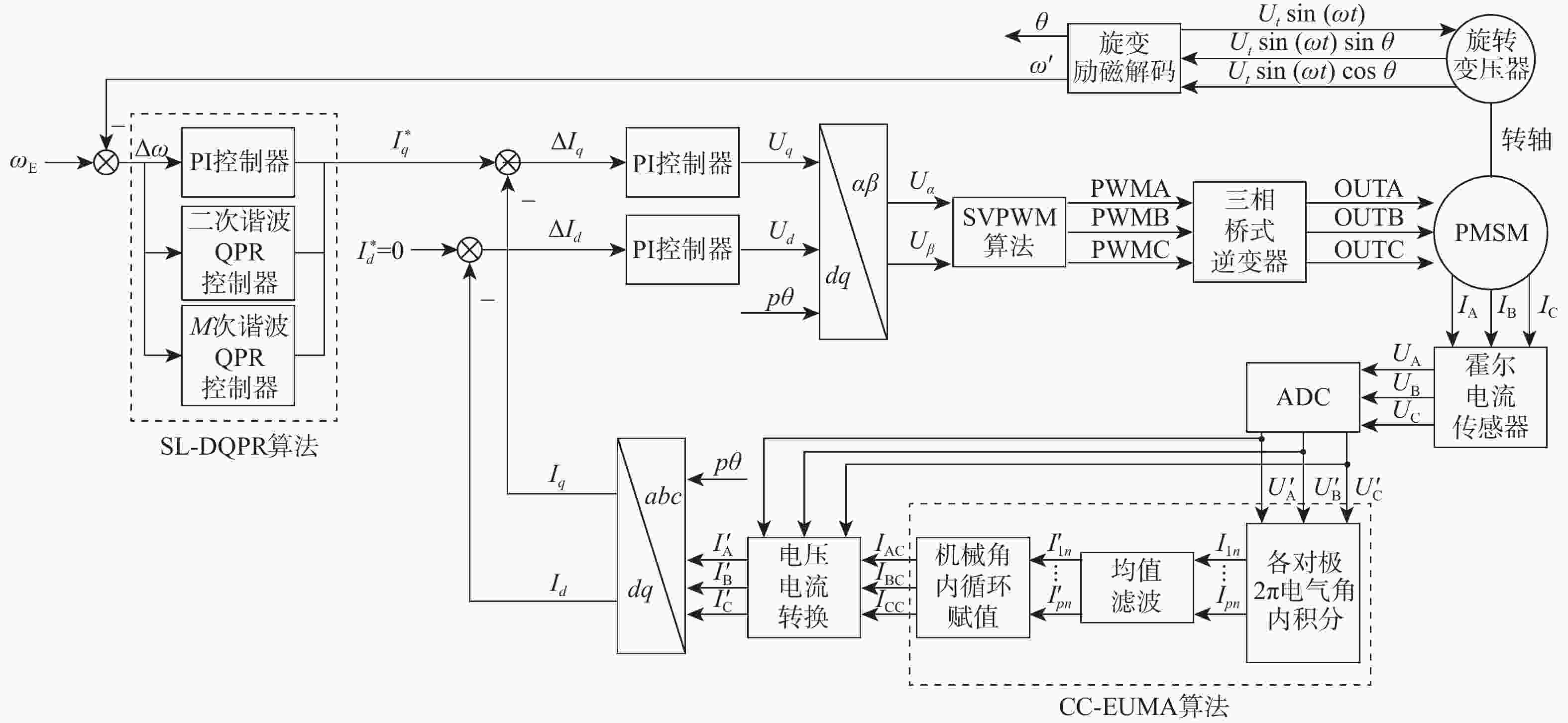 电机直驱伺服系统输出力矩直接作用于负载,受芯片工艺缺陷、相电感及检测电路非对称、电机定子开槽等因素影响,相电流的一次、二次谐波和齿谐波直接影响电磁转矩的稳定性。为提升系统的低速平稳度,基于电机数学模型和系统传递函数,指出3类低频谐波的产生原因。针对一次谐波,提出一种中心电流电气角更新与机械角赋值算法(CC-EUMA),提高磁路非理想时的谐波抑制能力,针对二次谐波和齿谐波,提出转速环双准比例谐振控制算法(SL-DQPR),在滤除谐波的同时兼具抗扰能力强和调参难度低的优势。通过仿真和实验验证了所提2种算法的有效性。加入算法后,电机空载运行的跟踪误差降低了2/3,实现了系统在有限硬件资源开销下的平稳运行,为空间低速直驱伺服系统的低速控制提供了新思路。