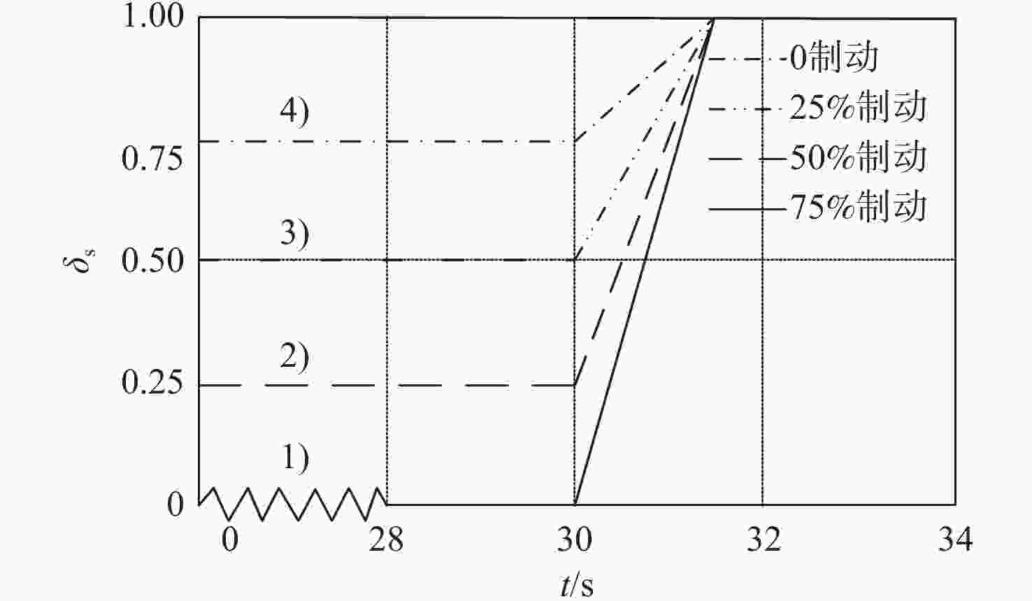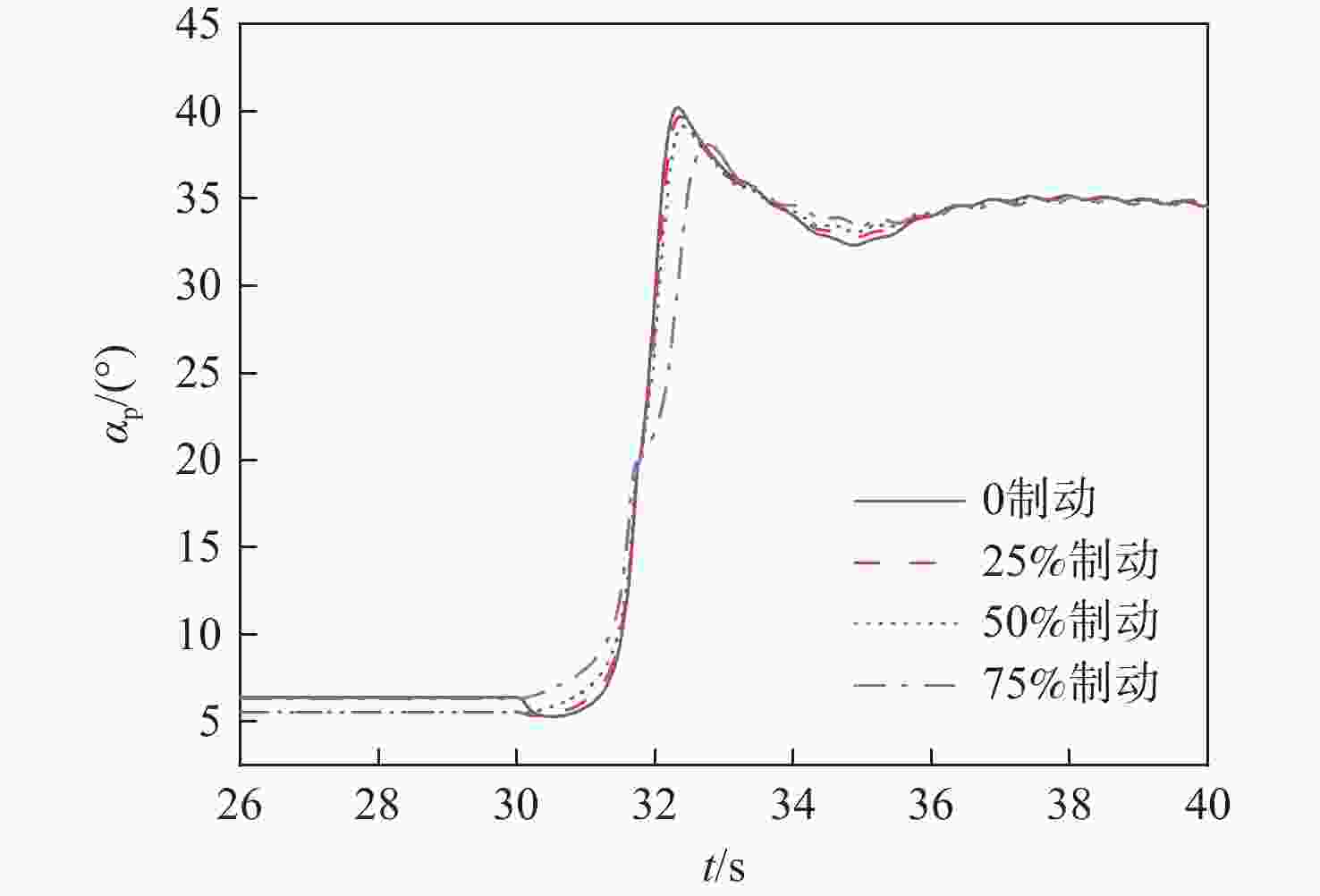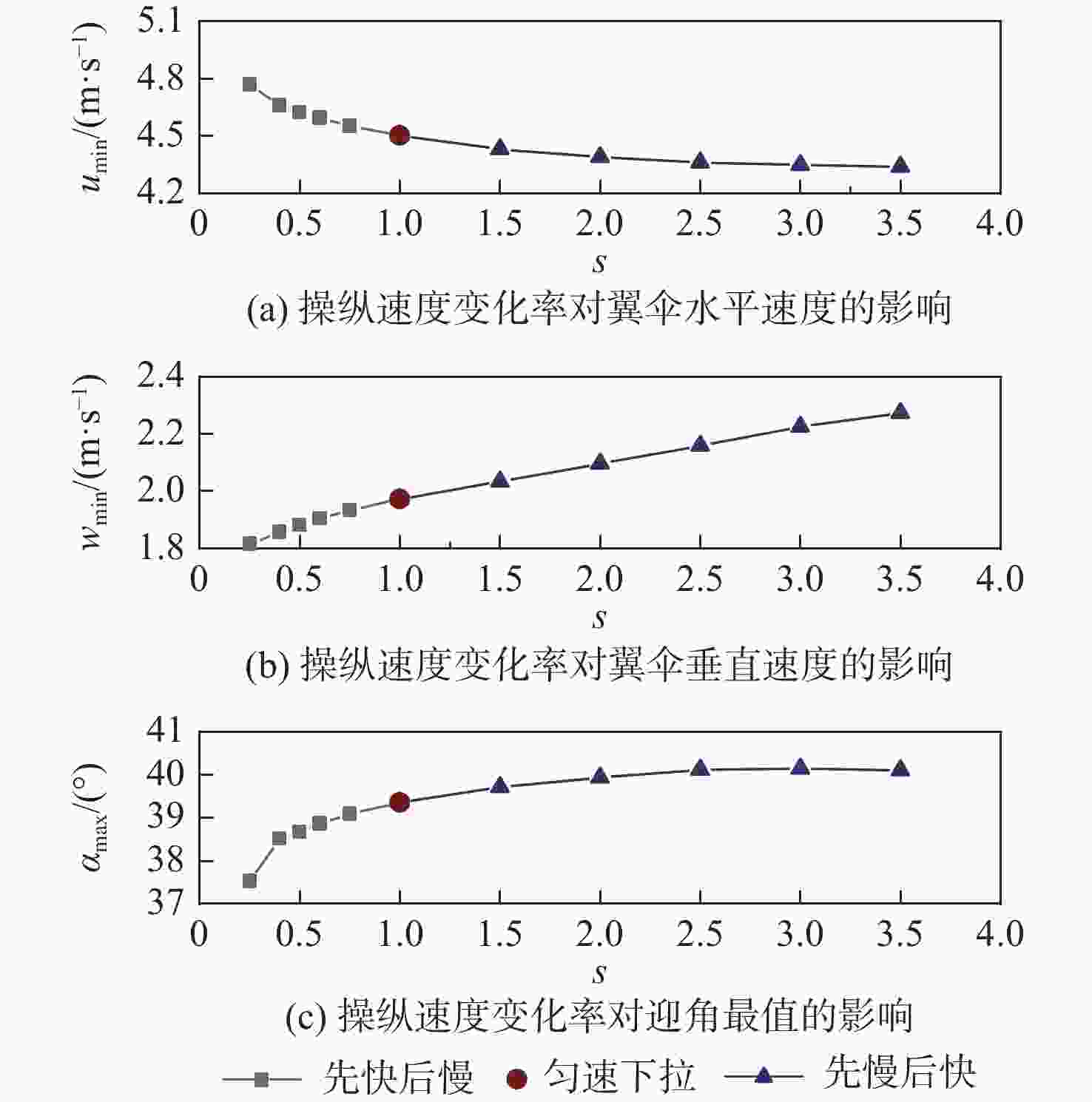 操纵方式 $ {u_{\min }} $/(m·s−1) $ {w_{\min }} $/(m·s−1) $ {\alpha _{\max }} $/(°) 0制动(一次操纵) 4.33 2.22 40.18 25%制动 4.48 2.48 39.69 50%制动 4.6 2.73 39.14 75%制动 4.76 3 38.07 表 5 操纵方式对比工况