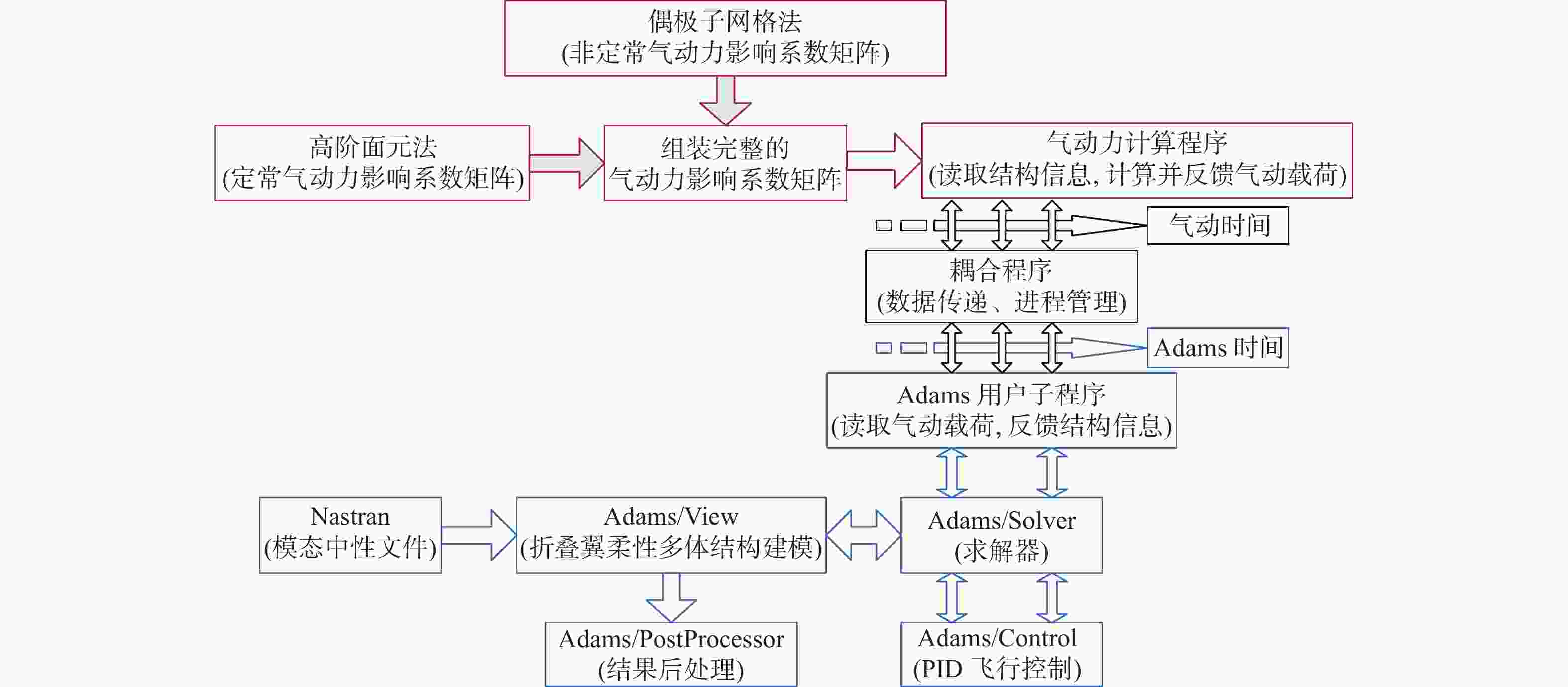 [1] LOVE M H, ZINK P S, STROUD R L, et al. Demonstration of morphing technology through ground and wind tunnel tests[C]//Proceedings of the 48th AIAA/ASME/ASCE/AHS/ASC Structures, Structural Dynamics, and Materials Conference. Reston: AIAA, 2007. [2] IVANCO T G, SCOTT R C, LOVE M H, et al. Validation of the lockheed martin morphing concept with wind tunnel testing[C]//Proceedings of the 48th AIAA/ASME/ASCE/AHS/ASC Structures, Structural Dynamics, and Materials Conference. Reston: AIAA, 2007. [3] RODRIGUEZ A R. Morphing aircraft technology survey[C]//Proceedings of the 45th AIAA Aerospace Sciences Meeting and Exhibit. Reston: AIAA, 2007. [4] LEE D H, WEISSHAAR T. Aeroelastic studies on a folding wing configuration[C]//Proceedings of the 46th AIAA/ASME/ASCE/AHS/ASC Structures, Structural Dynamics and Materials Conference. Reston: AIAA, 2005. [5] REICH G, BOWMAN J, SANDERS B, et al. Development of an integrated aeroelastic multi-body morphing simulation tool[C]// Proceedings of the 47th AIAA/ASME/ASCE/AHS/ASC Structures, Structural Dynamics, and Materials Conference. Reston: AIAA, 2006. [6] BOWMAN J, REICH G, SANDERS B, et al. Simulation tool for analyzing complex shape-changing mechanisms in aircraft[C]//Proceedings of the AIAA Modeling and Simulation Technologies Conference and Exhibit. Reston: AIAA, 2006. [7] SCARLETT J N, CANFIELD R A, SANDERS B. Multibody dynamic aeroelastic simulation of a folding wing aircraft[C]//Proceedings of the 47th AIAA/ASME/ASCE/AHS/ASC Structures, Structural Dynamics, and Materials Conference. Reston: AIAA, 2006. [8] XU H, HAN J L, YUN H W, et al. Calculation of the hinge moments of a folding wing aircraft during the flight-folding process[J]. International Journal of Aerospace Engineering, 2019, 2019: 1-11. [9] KATZ J, PLOTKIN A. Low-speed aerodynamics, second edition[J]. Journal of Fluids Engineering, 2004, 126(2): 293-294. doi: 10.1115/1.1669432 [10] XU H, HAN J L, XI Y, et al. Comparative study of lifting surface and CFD methods in the simulation of morphing process of folding wing[J]. International Journal of Aerospace Engineering, 2022, 2022: 2476196. [11] MURUA J, PALACIOS R, GRAHAM J M R. Applications of the unsteady vortex-lattice method in aircraft aeroelasticity and flight dynamics[J]. Progress in Aerospace Sciences, 2012, 55: 46-72. doi: 10.1016/j.paerosci.2012.06.001 [12] CARMICHAEL R L, ERICKSON L L. PAN AIR—A higher order panel method for predicting subsonic or supersonic linear potential flows about arbitrary configurations[C]//Proceedings of the AlAA 14th Fluid and Plasma Dynamics Conference. Reston: AIAA, 1981. [13] 赵永辉. 气动弹性力学与控制[M]. 北京: 科学出版社, 2007: 310-319.ZHAO Y H. Aeroelasticity and control[M]. Beijing: Science Press, 2007: 310-319(in Chinese). [14] HARDER R L, DESMARAIS R N. Interpolation using surface splines[J]. Journal of Aircraft, 1972, 9(2): 189-191. doi: 10.2514/3.44330 [15] 李增刚. ADAMS入门详解与实例[M]. 2版. 北京: 国防工业出版社, 2014: 127-135.LI Z G. Detailed introduction and examples of ADAMS[M]. 2nd ed. Beijing: National Defense Industry Press, 2014: 127-135(in Chinese). [16] 纪玉杰, 杨强, 孙志礼, 等. 应用C语言编写ADAMS用户自定义函数的研究[J]. 机械设计与制造, 2006(1): 101-103. doi: 10.3969/j.issn.1001-3997.2006.01.046JI Y J, YANG Q, SUN Z L, et al. The research on writing user-written subroutine of ADAMS in C programming language[J]. Machinery Design & Manufacture, 2006(1): 101-103 (in Chinese). doi: 10.3969/j.issn.1001-3997.2006.01.046 -