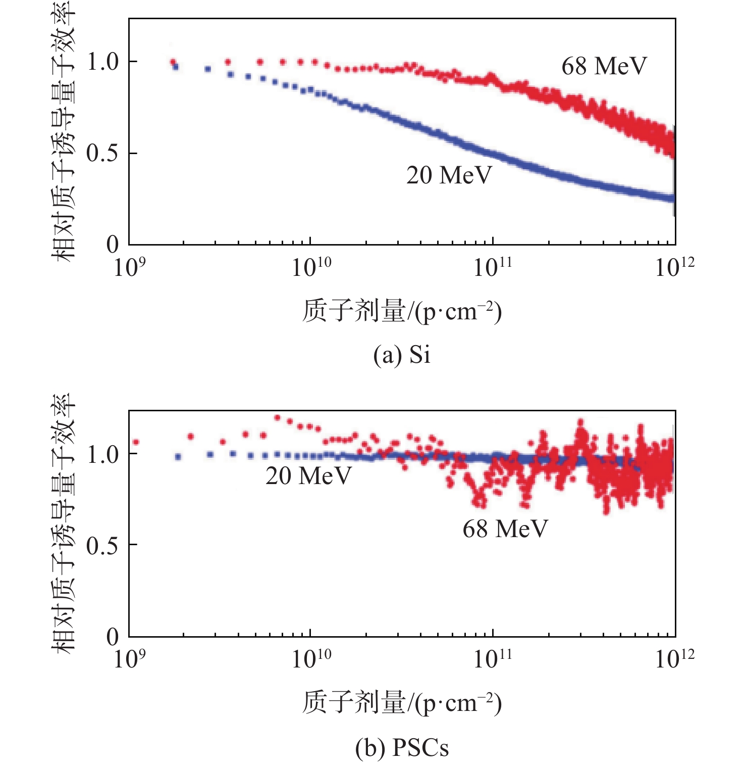 图 23  Si和PSCs被不同能量的质子辐照后的相对质子诱导量子效率[73]