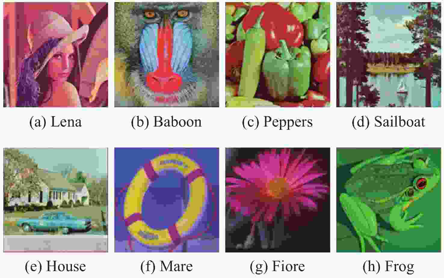 图像名称 Lena Baboon Peppers Sailboat House Mare Fiore Frog Lena 1.0000 0.5710 0.6210 0.5805 0.5825 0.5498 0.6893 0.5015 Baboon 0.5710 1.0000 0.6011 0.5712 0.6148 0.5173 0.5444 0.5928 Peppers 0.6210 0.6011 1.0000 0.6043 0.6313 0.5322 0.6075 0.5888 Sailboat 0.5805 0.5712 0.6043 1.0000 0.6122 0.5319 0.5773 0.5801 House 0.5825 0.6148 0.6313 0.6122 1.0000 0.5098 0.5192 0.6344 Mare 0.6572 0.5988 0.6529 0.6331 0.6091 1.0000 0.5863 0.5080 Fiore 0.6893 0.5444 0.6075 0.5773 0.5192 0.5863 1.0000 0.4525 Frog 0.5015 0.5928 0.5888 0.5801 0.6344 0.5080 0.4525 1.0000 表 2 常规攻击测试结果