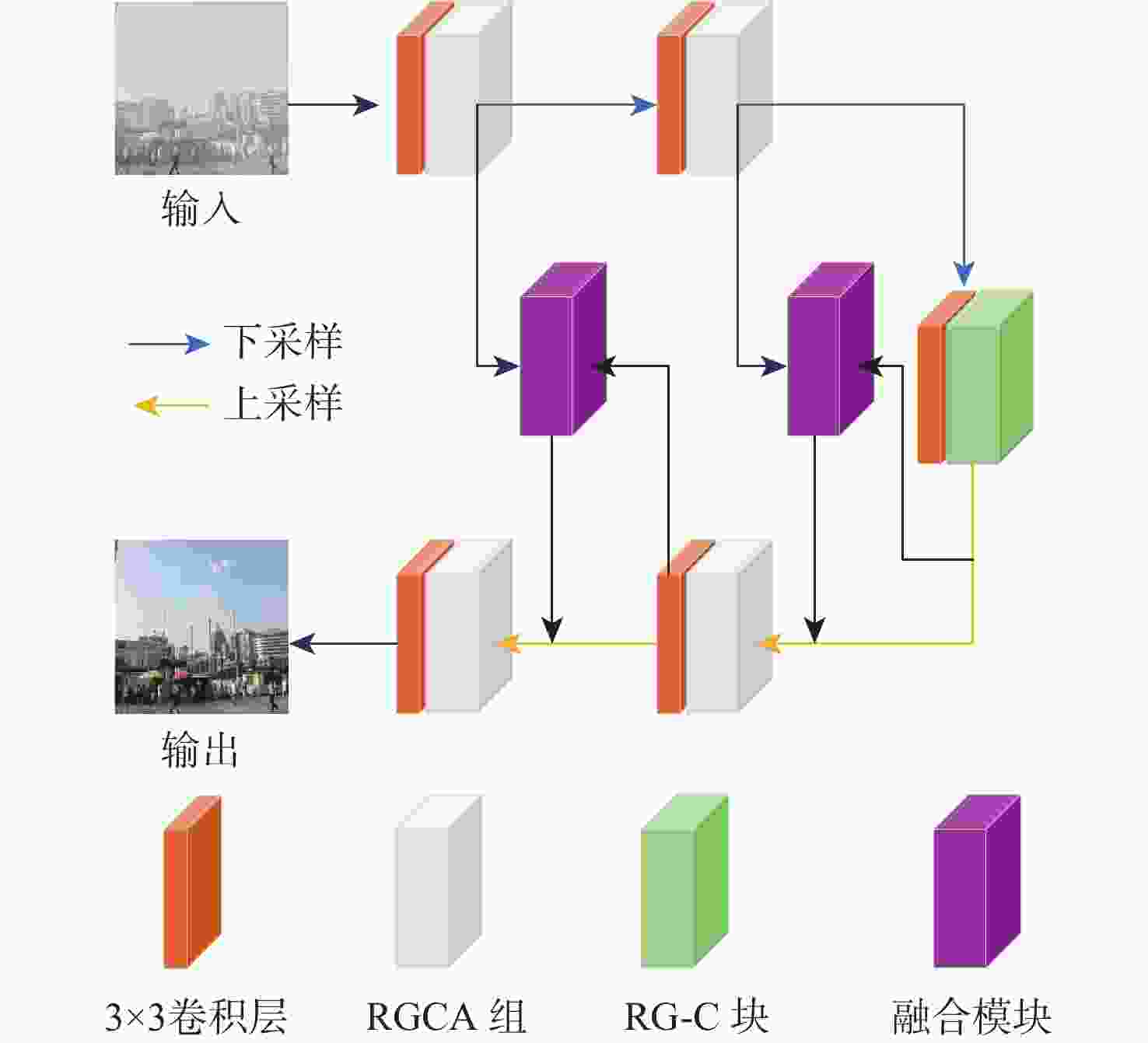 模块 PSNR/dB SSIM Base 27.25 0.9562 Base+RGCA 28.89 0.9619 Base+RGCA+RG-C 28.85 0.9761 Base+RG-C+LHFF 31.17 0.9792 Base+RGCA+LHFF 30.61 0.9780 本文 33.08 0.9814 -