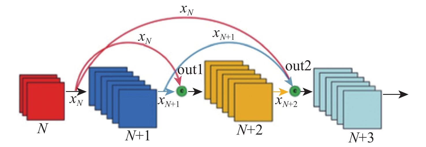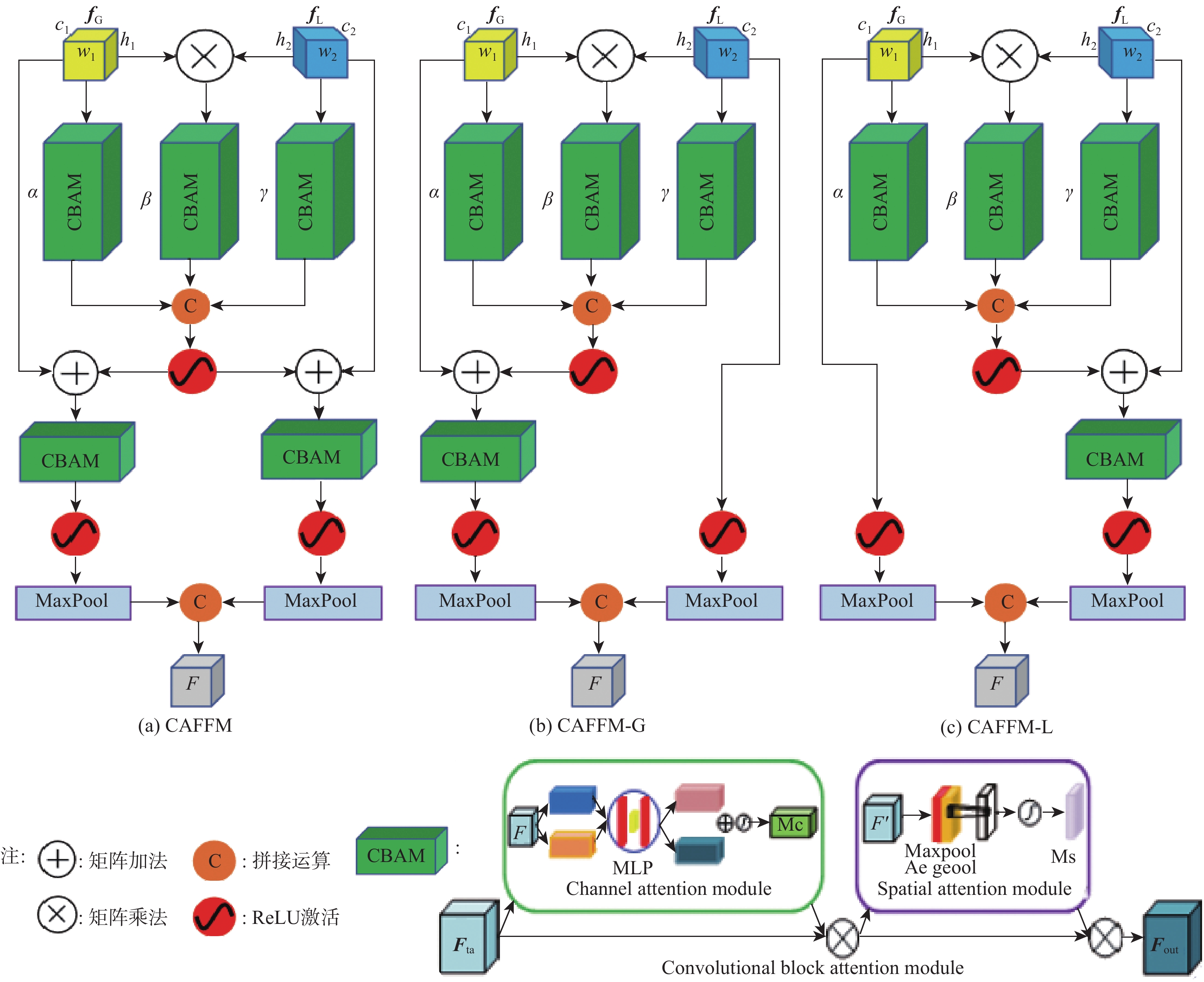 准确率/%参数量/M 浮点运算量/G 推理速度/(帧·s−1) GFEM 77.50 66.31 73.38 2.59 1.778 111.5 LTFEM 76.53 62.69 76.90 6.26 3.287 106.3 GFEM+LTFEM 81.41 66.34 76.47 8.13 4.927 104.5 GFEM+LTFEM+DEN 83.49 71.19 77.39 8.17 5.073 102.2 GFEM+LTFEM+CAFFM 82.81 74.67 79.76 8.46 5.165 97.3 GFEM+LTFEM+DEN+CAFFM 85.18 74.33 81.19 8.97 5.258 95.8 GFEM+LTFEM+CAFFM-L 84.52 74.52 79.71 8.49 5.140 97.3 GFEM+LTFEM+DEN+CAFFM-L 84.14 74.55 77.81 8.78 5.232 95.7 GFEM+LTFEM + CAFFM-G 81.63 72.23 77.76 8.50 5.151 97.5 GFEM+LTFEM +DEN+CAFFM-G 83.26 74.05 77.52 8.79 5.243 95.8 表 4 CAFFM不同权重比在3个数据集上的准确率