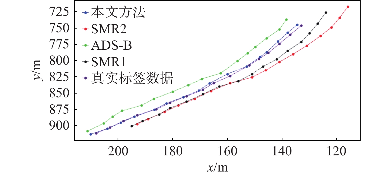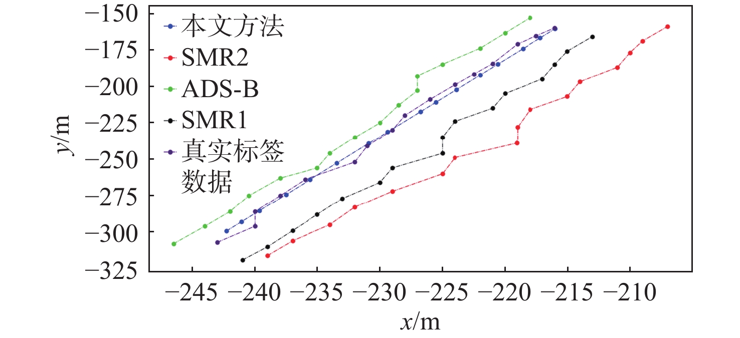 数据来源 MSE/m RMSE/m MAE/m Trans-Attention 4.2811 2.0691 2.0595 ADS-B 14.4971 3.8075 4.3479 SMR1 36.3145 6.0262 8.2769 SMR2 47.4476 6.8882 10.6579 表 3 EKF融合方法参数设置