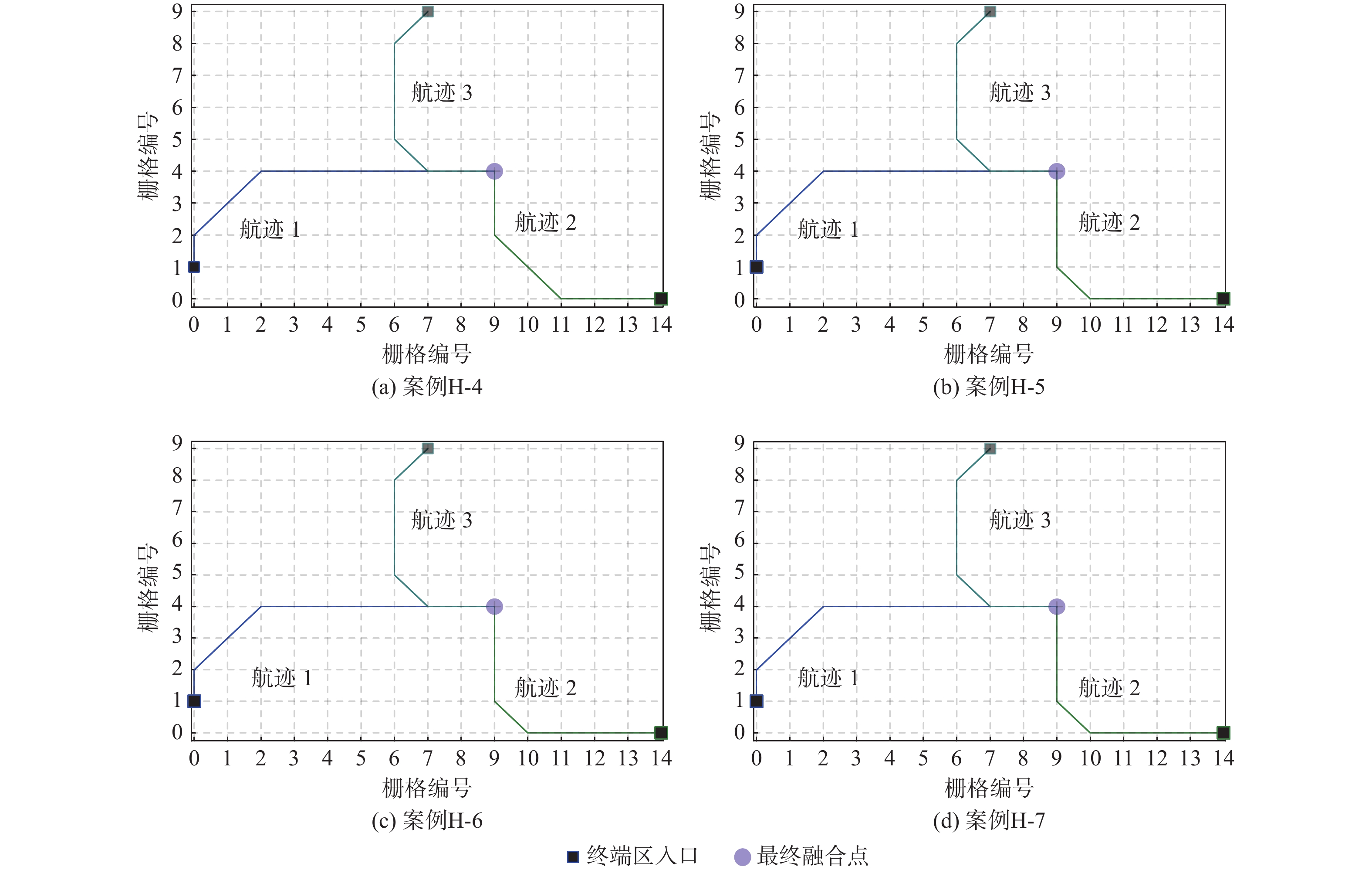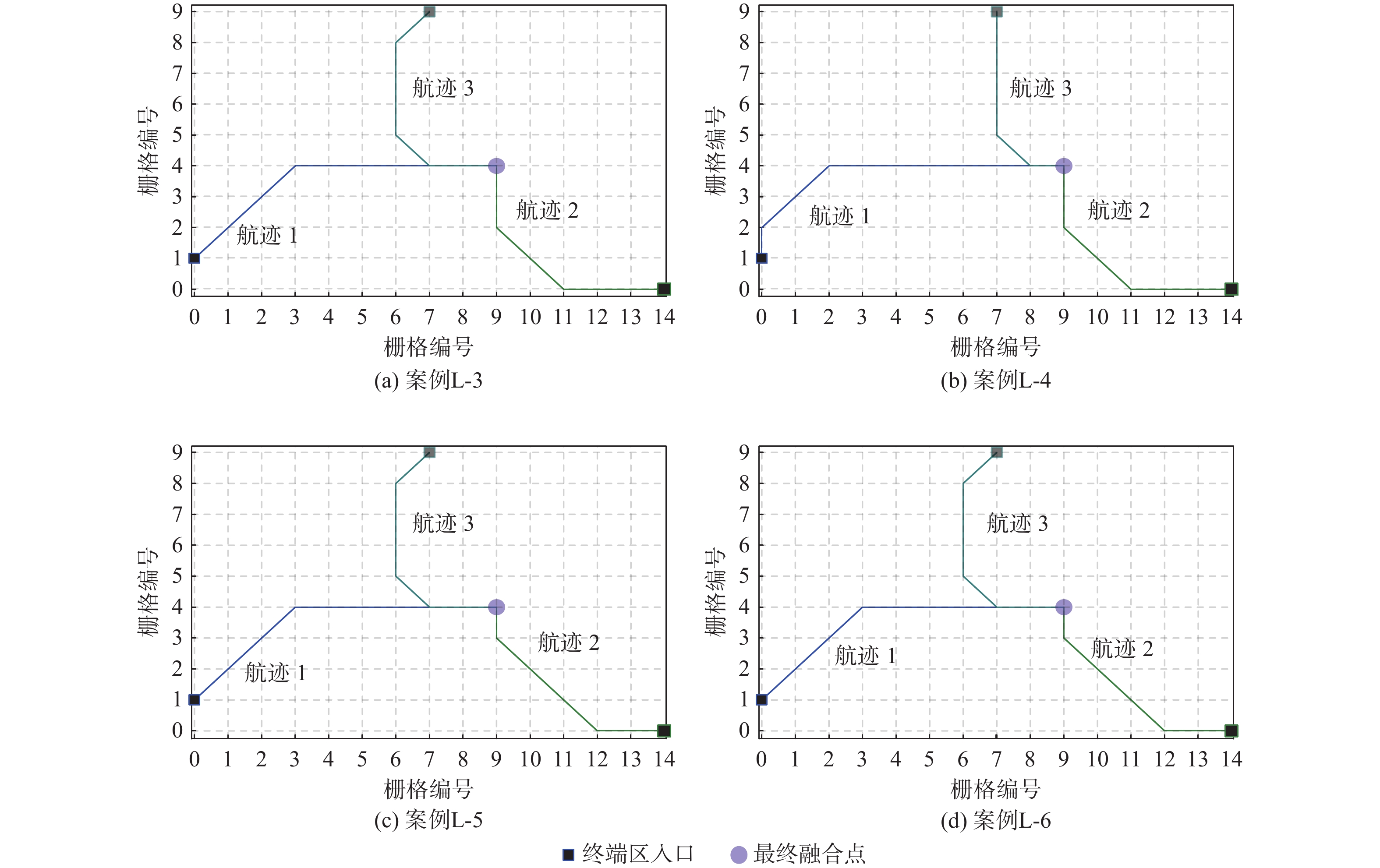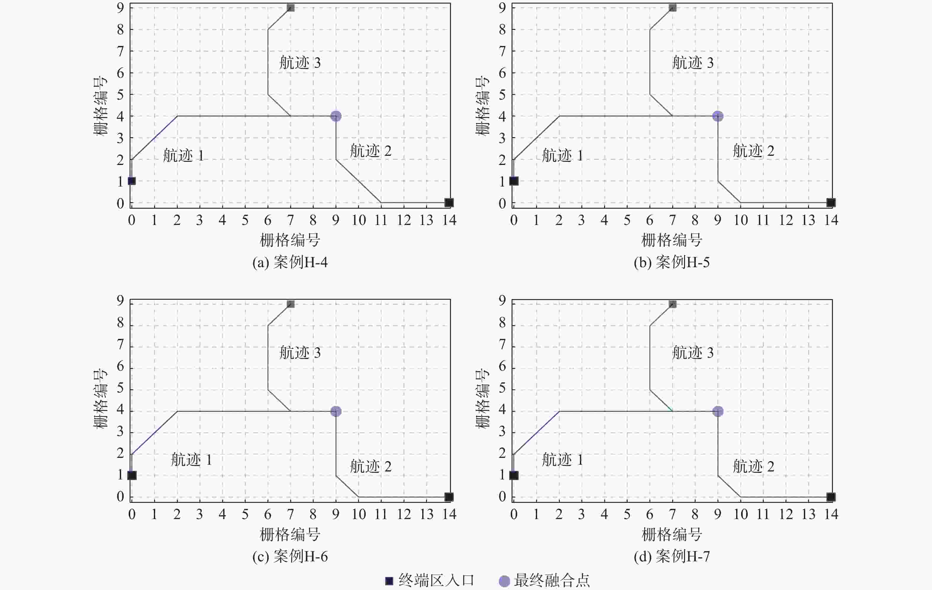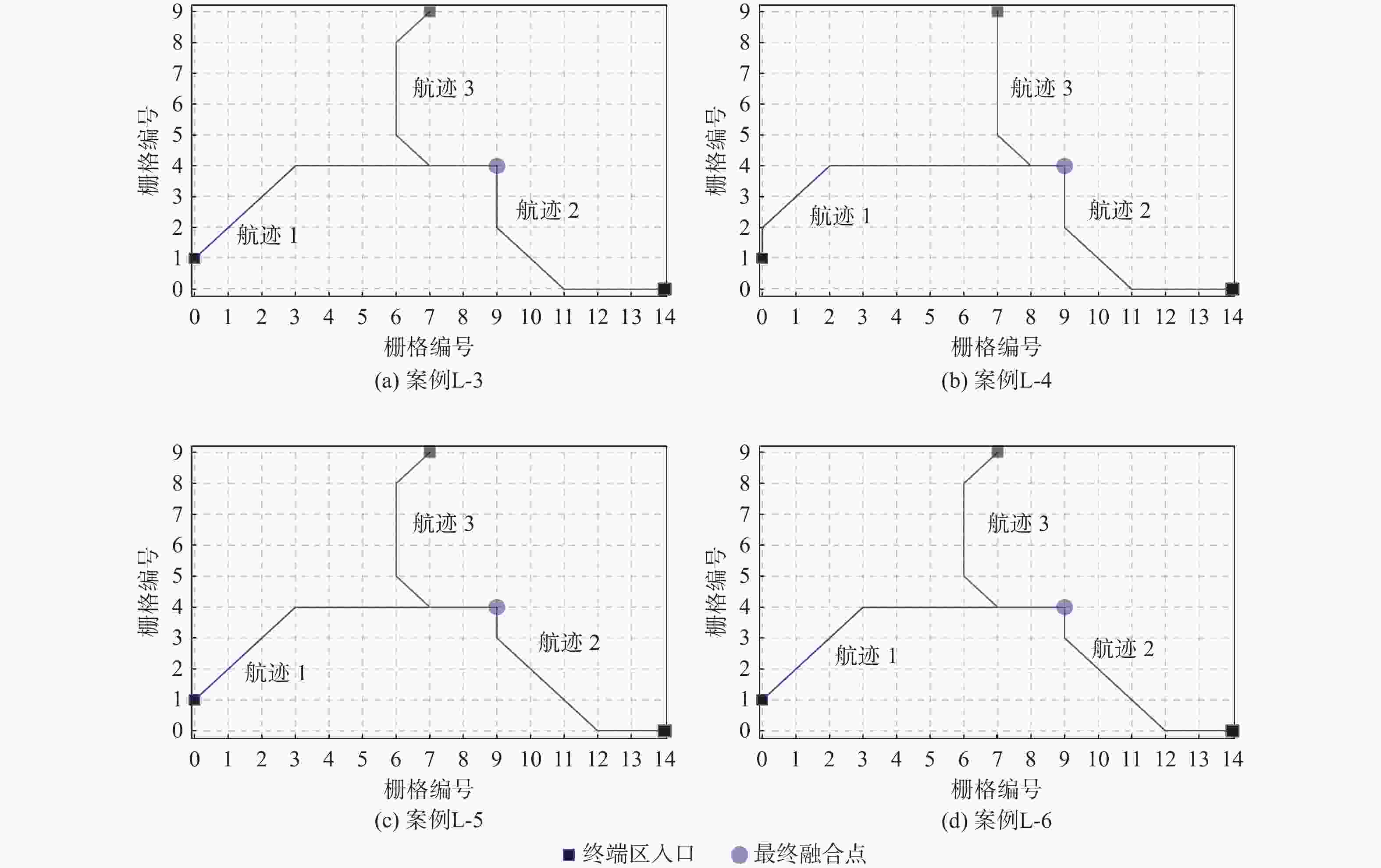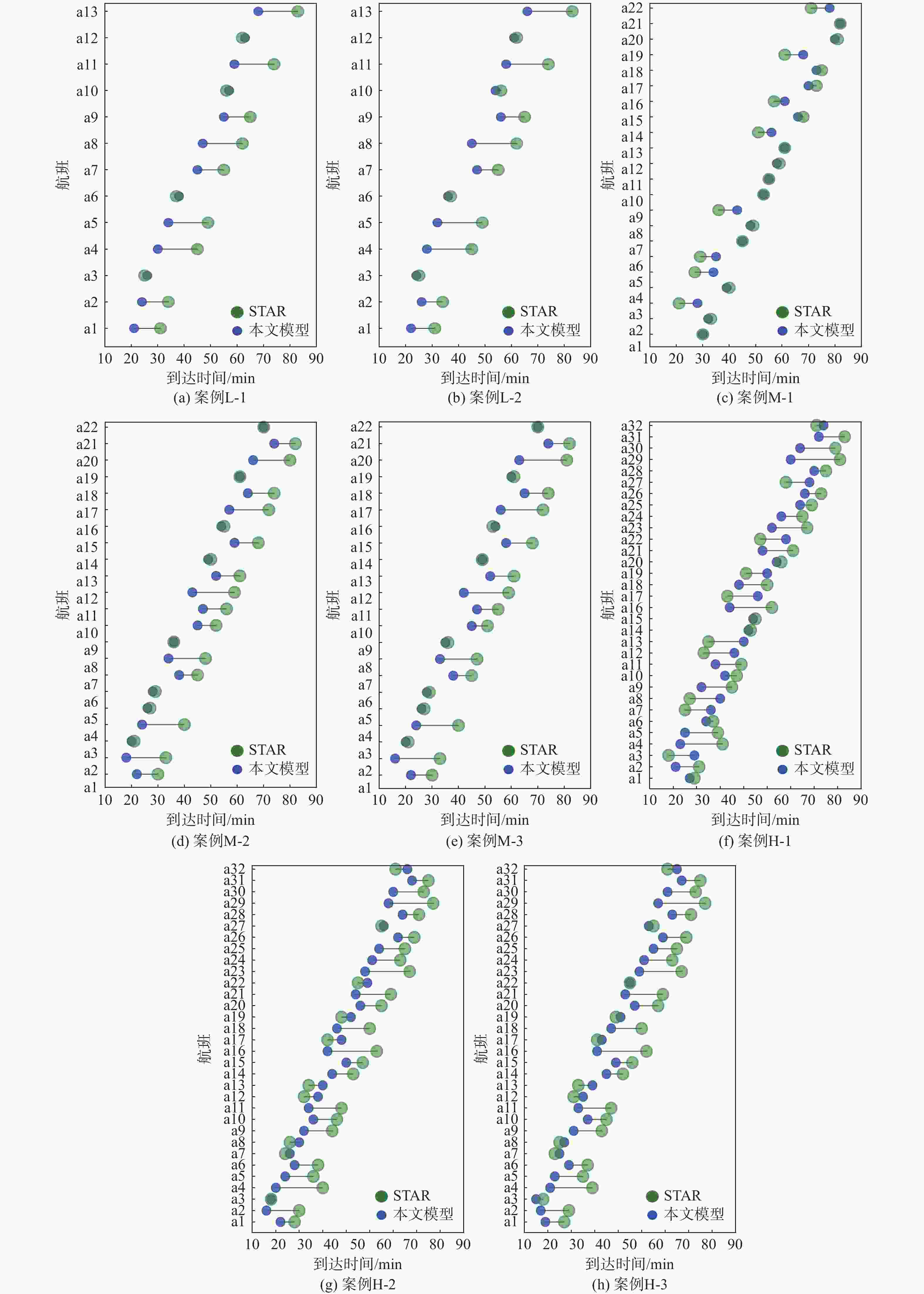 kmL-1 −37 +14 −67 −90 L-2 −31 +9 −82 −104 M-1 −11 +19 −13 −5 M-2 −31 +9 −67 −89 M-3 −31 +9 −82 −104 H-1 +3 +90 −47 −170 −124 H-2 −31 +19 −67 −170 −249 H-3 −31 +14 −67 −170 −254 表 3 最后一架航班到达最终融合点的时间