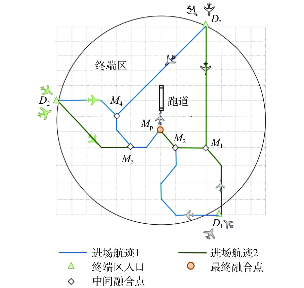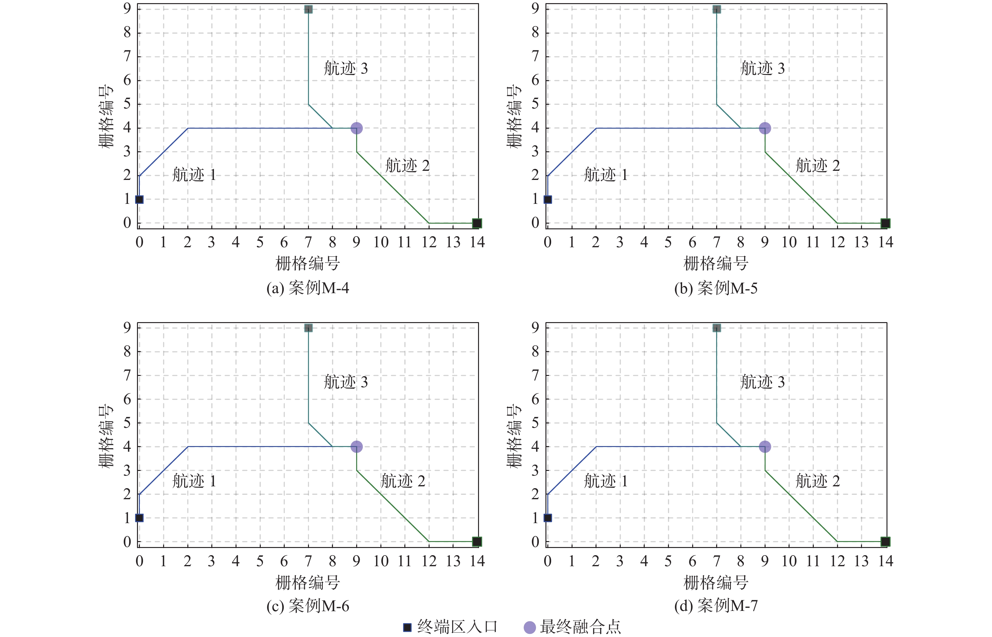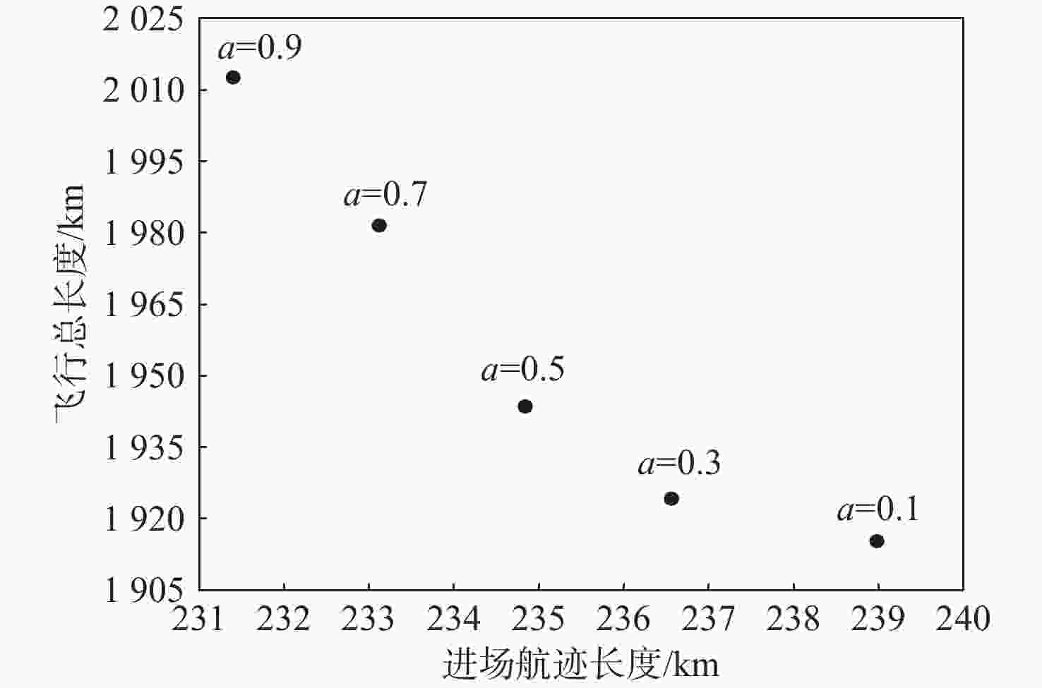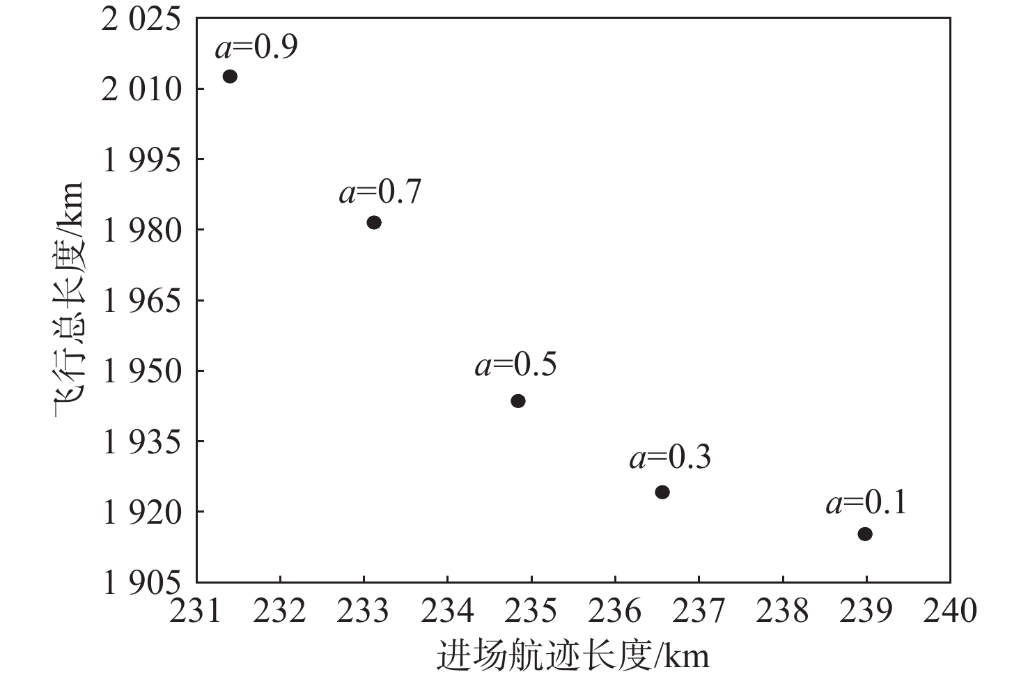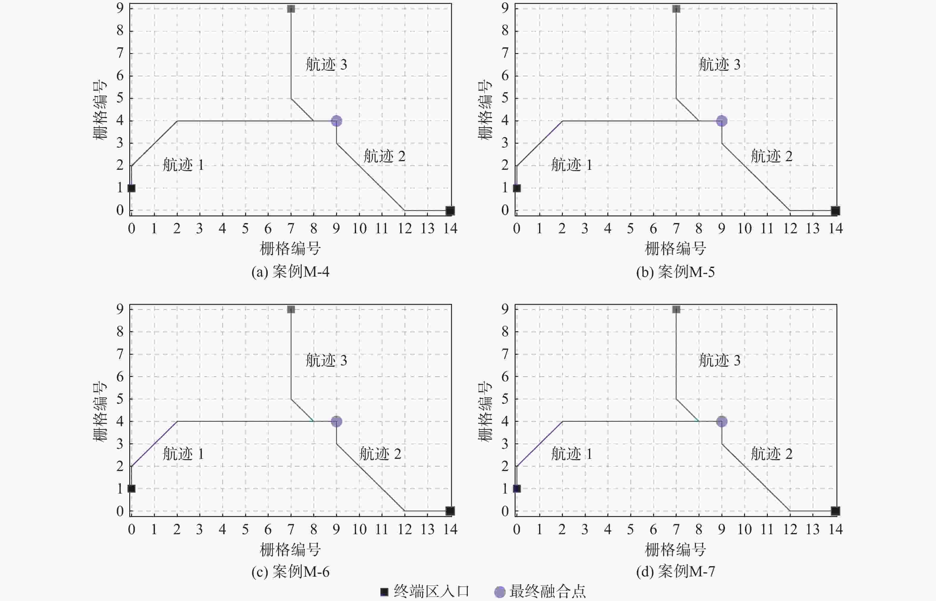 kmL-1 −37 +14 −67 −90 L-2 −31 +9 −82 −104 M-1 −11 +19 −13 −5 M-2 −31 +9 −67 −89 M-3 −31 +9 −82 −104 H-1 +3 +90 −47 −170 −124 H-2 −31 +19 −67 −170 −249 H-3 −31 +14 −67 −170 −254 表 3 最后一架航班到达最终融合点的时间