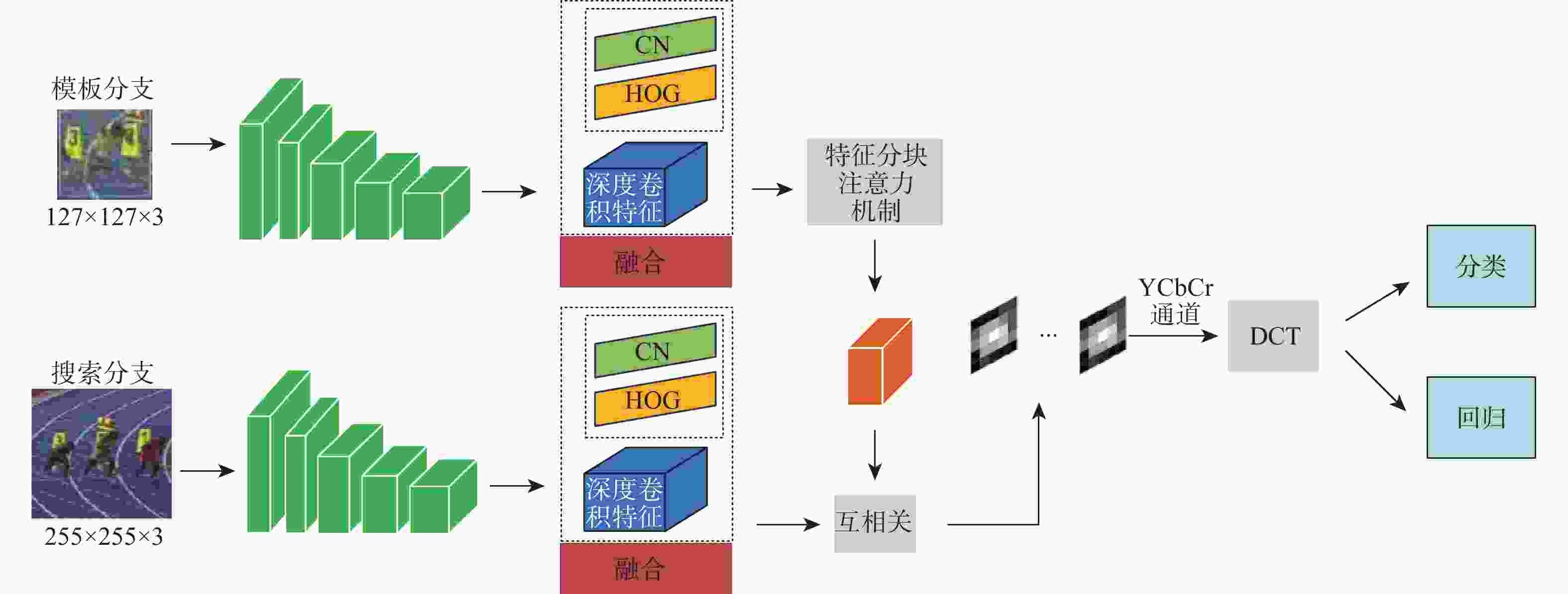 无人机(UAV)已被广泛应用于各类领域中,目标跟踪是无人机应用的关键技术之一。提出一种基于特征融合和分块注意力的无人机跟踪算法,旨在解决无人机在目标跟踪时面临的外观变化和外界因素干扰等问题。采用Siamese网络提取模板图像和搜索图像的方向梯度直方图(HOG)特征、颜色(CN)特征和深度卷积特征,自适应计算3种特征权重的大小,增强融合特征的表达能力。采用改进的特征分块注意力机制,增强模板图像特征信息中有效区域的关注度,实现更有效地目标相似度匹配。为降低计算成本,将输出特征向量转换到YCbCr空间后进行离散余弦变换(DCT)并保留低频分量,得到特征响应图,进行分类回归得到最终目标位置。实验表明:所提算法可以降低外观变化、外界因素干扰对跟踪性能的影响,提升目标跟踪的准确性。
