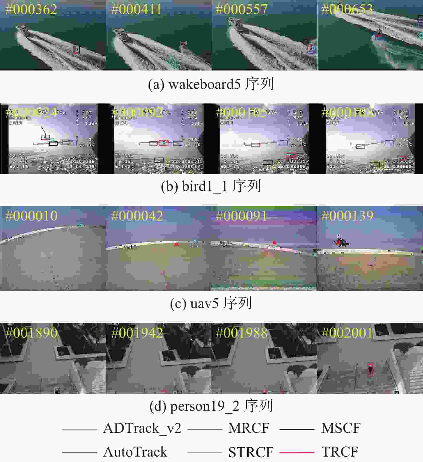 帧/s 算法 帧率 平均值 UAVDT VisDrone-SOT2018 UAV123 MRCF 46.9316 33.3641 35.0628 38.4528 MSCF 28.691 24.8189 23.3937 25.6345 BACF 58.749 37.0889 39.5027 45.1135 DSST 140.946 61.7457 84.6391 95.7769 fDSST 201.1066 146.093 164.2684 170.489 SAMF 14.722 7.5533 9.9559 10.7437 SRDCF 15.5058 8.0745 10.2923 11.2909 STRCF 28.712 20.9129 21.2095 23.6115 AutoTrack 35.2138 41.8124 40.8652 39.2971 ARCF 22.1567 21.1463 22.44 21.9143 DRCF 38.3627 30.208 31.9774 33.5160 TRCF 24.1157 16.7908 23.0223 21.3096 注:粗体、斜体、下划线分别表示第1、第2、第3名。 表 4 消融实验帧率对比