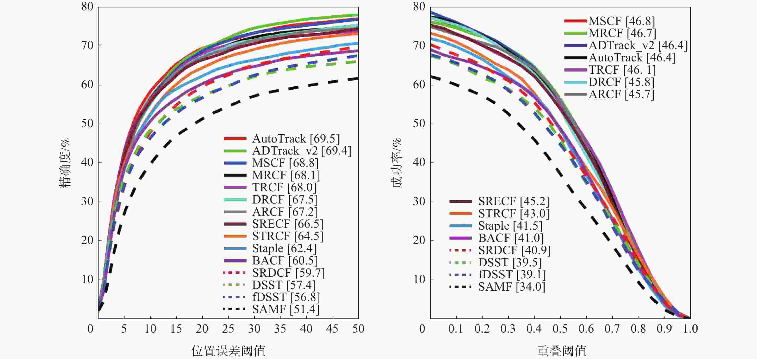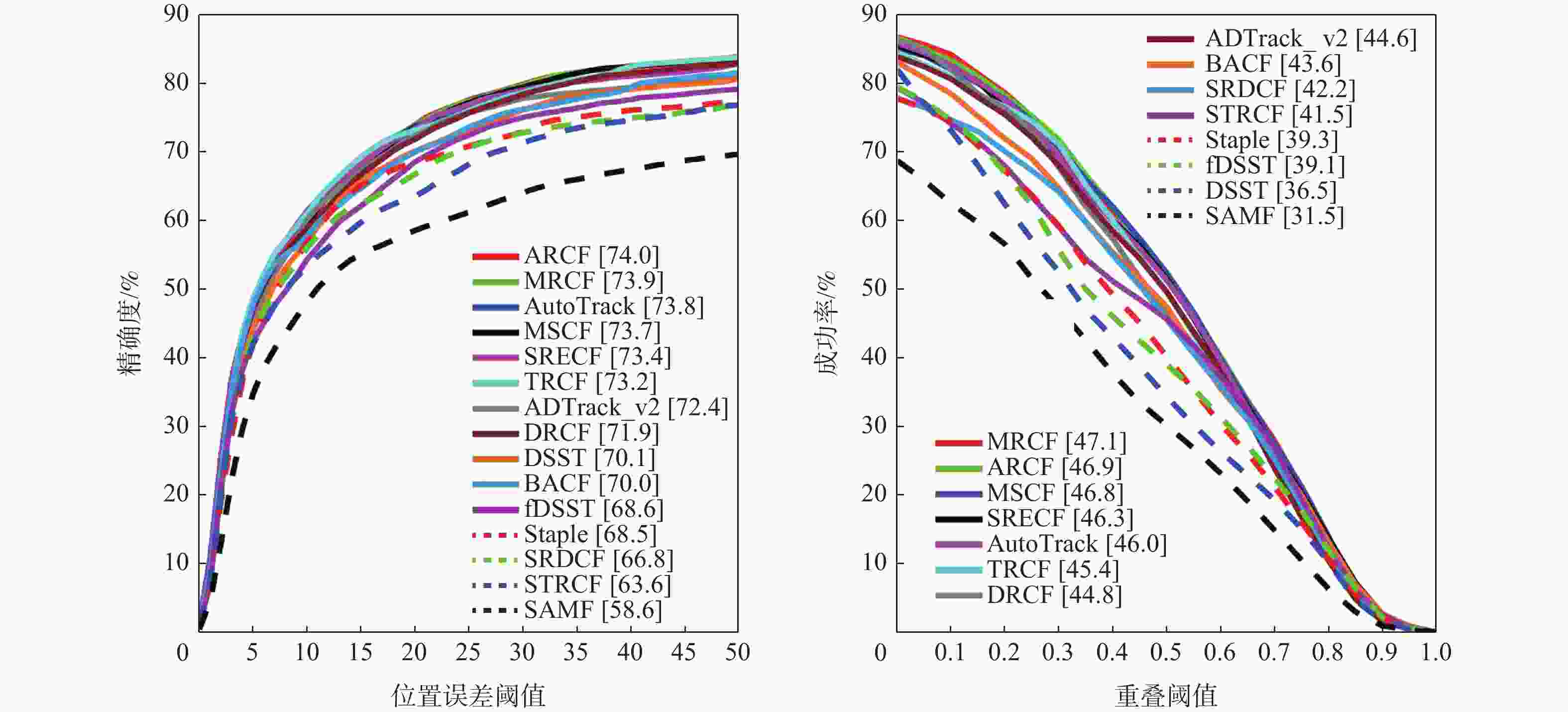 % 基准数据集 精确度 成功率 DRCF DRCF+