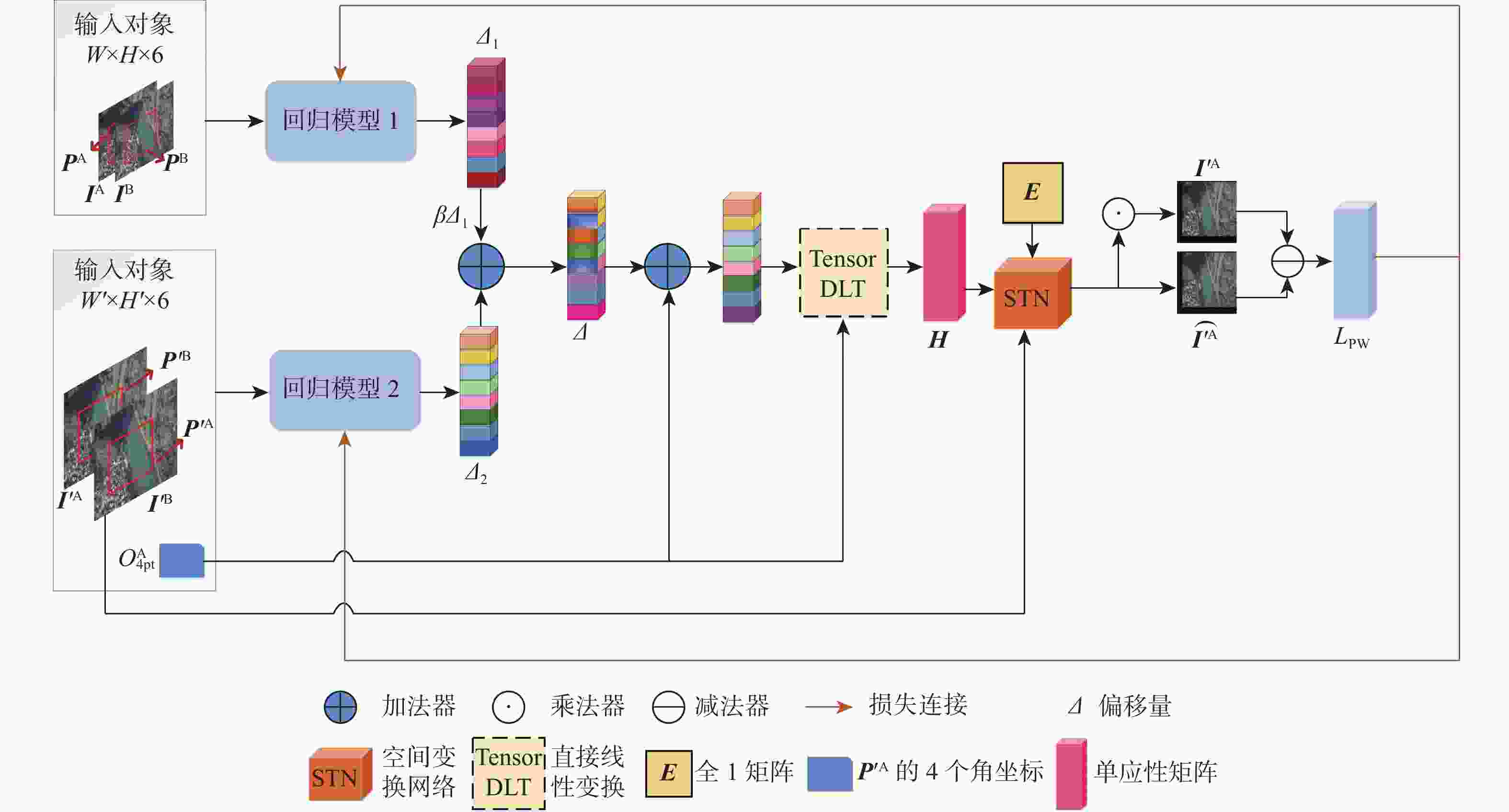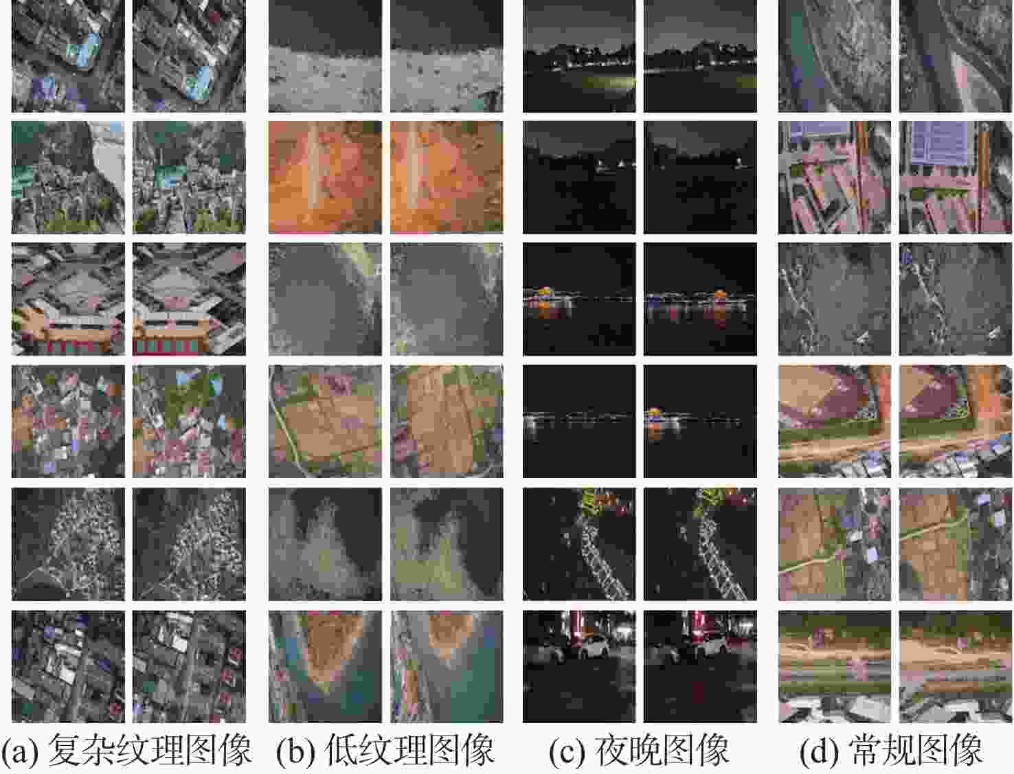 层名称 层操作 特征图大小/像素 Con1_x 7×7, 64, 步长=2 256×256 最大池化 3×3, 步长=2 128×128 Con2_x $\left[ \begin{gathered} 3 \times 3,64 \\ 3 \times 3,64 \\ \end{gathered} \right] \times 3$ 128×128 Con3_x $\left[ \begin{gathered} 3 \times 3,128 \\ 3 \times 3,128 \\ \end{gathered} \right] \times 4$ 64×64 Con4_x $\left[ \begin{gathered} 3 \times 3,256 \\ 3 \times 3,256 \\ \end{gathered} \right] \times 6$ 32×32 Con5_x $\left[ \begin{gathered} 3 \times 3,512 \\ 3 \times 3,512 \\ \end{gathered} \right] \times 3$ 16×16 平均池化 2×2, 步长=2 8×8 全连接层 8个偏移量 1×1 表 2 不同算法的单应性比较