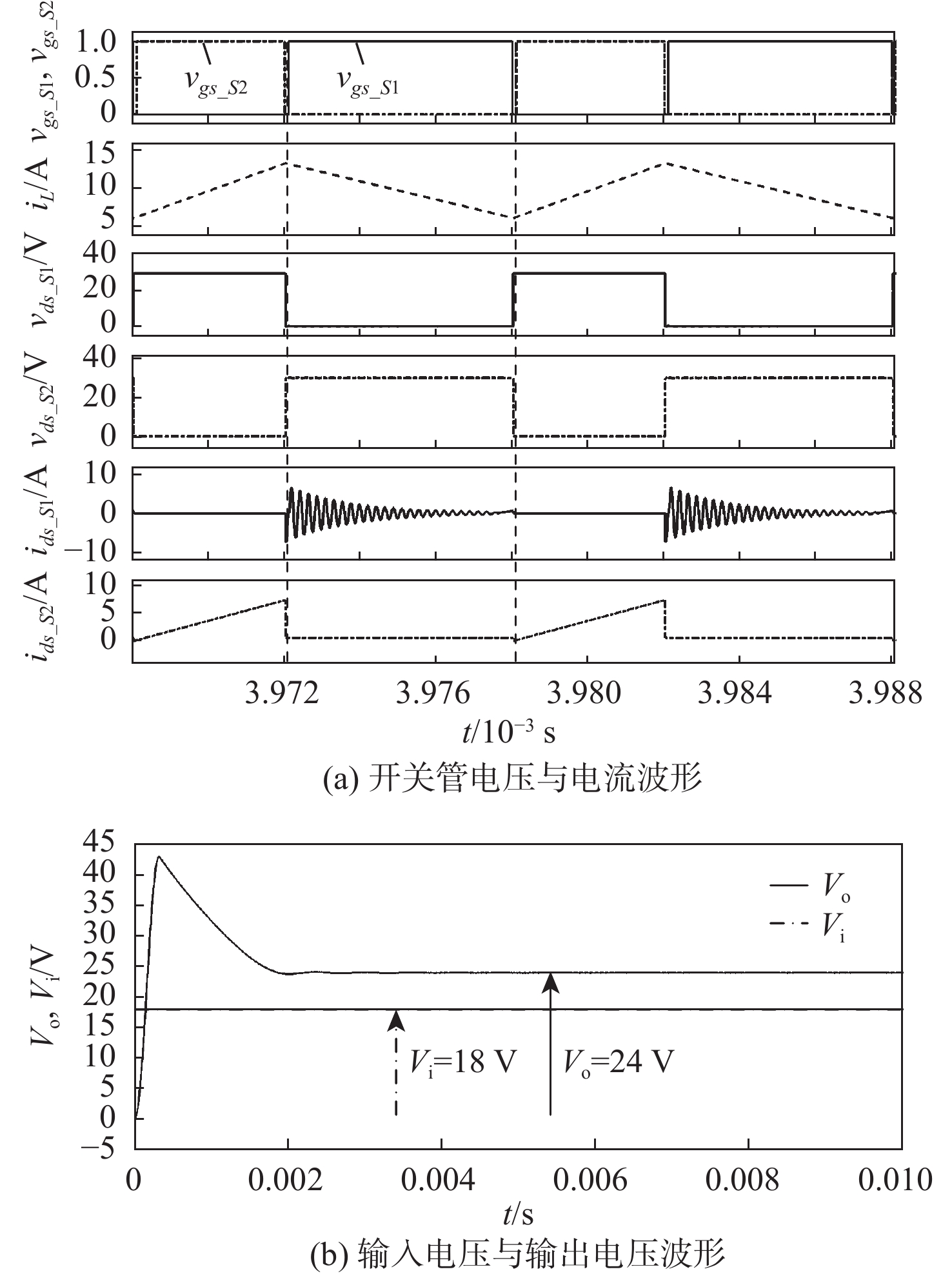 参数 数值 输入电压Vi/V 18 输出功率Po/W 24 开关频率fs/kHz 100 电感L/μH 10 励磁电感Lm/μH 100 输出电压Vo/V 24 占空比D 0.4 变压器匝数比N1∶N2 1∶2 电容C/μF 1 输出电容Co/μF 100 -