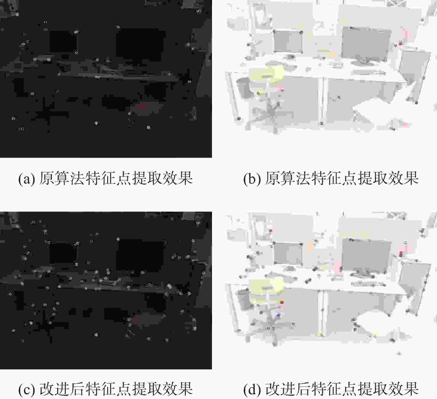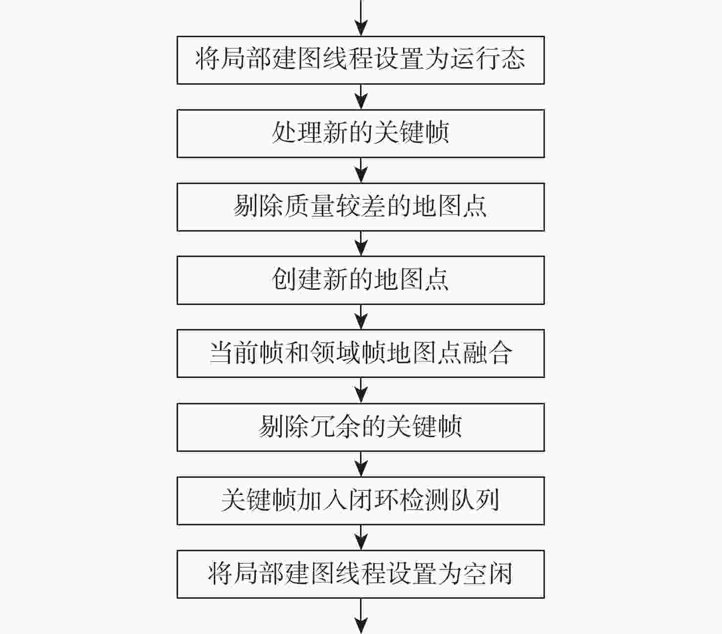 线程 模块 用时/ms 标准差/ms 跟踪线程 特征提取 17.78 3.85 位姿估计 2.87 1.31 整体耗时 33.22 13.99 局部地图构建线程 关键帧插入 17.96 8.11 地图点创建 91.17 30.59 局部BA优化 458.52 319.41 总体耗时 609.71 368.44 表 4 跟踪线程处理单帧图片用时对比
