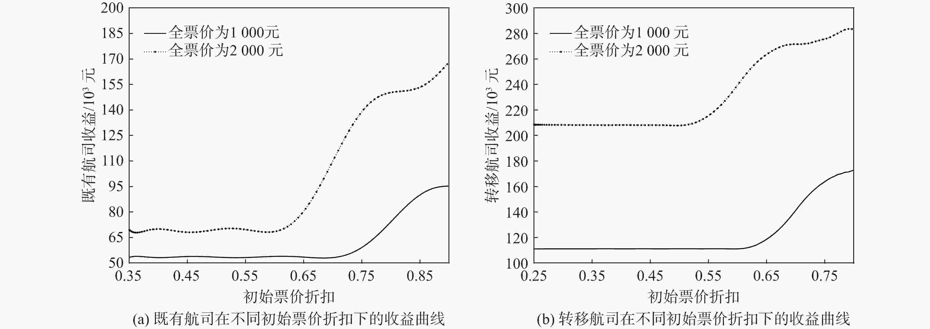 变化率/%旅客选择概率变化率/% 初值敏感指数/% 转移航司 既有航司 转移航司 既有航司 $ \varphi $ 0.5 0.75 50 −2.66 6.86 −5.32 13.72 $ \rho $ 0.5 0.25 −50 −1.16 3.14 2.32 −6.28 $ {\theta ^k} $ 25 50 100 −0.60 −1.01 −0.60 −1.01 $ \alpha $ 0.5 0.75 50 0 0 0 0 表 5 下层博弈模型初值设置