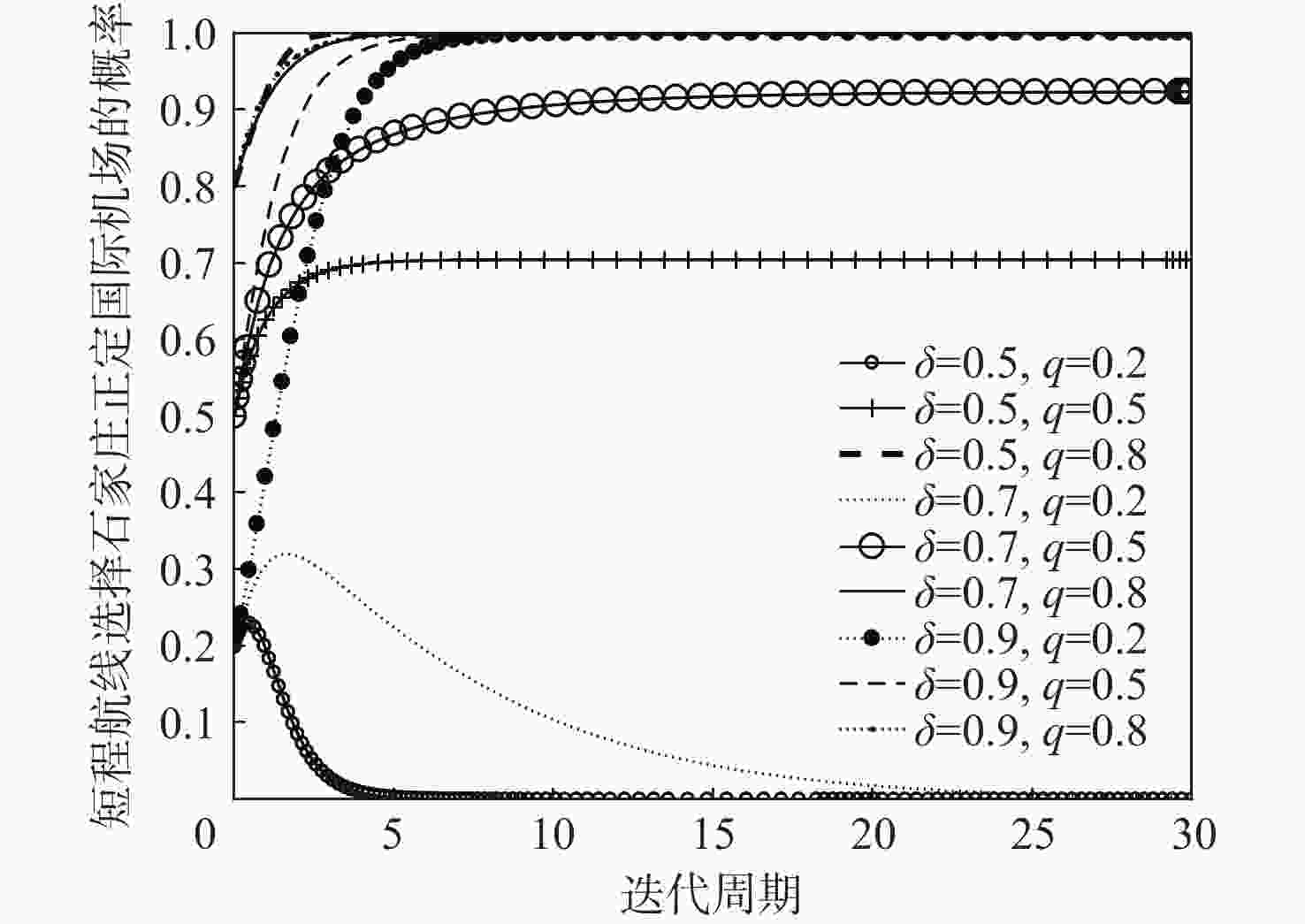 Abstract:To enhance the high-quality collaborative development of multiple airports in the region based on differentiated positioning, the impact of airport subsidy strategies on the evolution of the multi-airport route network was studied, and the optimal subsidy strategy was determined. A double-layer evolutionary game model was constructed based on the competitive game relationships among passengers, airlines, and airports. In the upper-level model, the influence of passengers’ self-learning ability on fares was considered, and a passenger Logit choice model incorporating a self-learning mechanism was constructed. The Hotelling model was then used to analyze the impact of fare competition among airlines on the same route on passenger choice behavior, thereby determining the optimal pricing strategy for airlines under competitive conditions. In the lower-level model, the evolutionary game process of competitive choices between airport subsidies and airlines was analyzed based on the replicator dynamic equation. The synergistic effect of the inter-airport collaborative subsidy strategy and the route network was determined.The results show that for airlines transferring routes, the advantageous discount range for attracting leakage passengers is between 0.6 and 0.75. The fare discounts for airlines competing on the same route should be concentrated between 0.6 and 0.85 to avoid the loss of revenue caused by low price competition. Additionally, the optimization of the route network through airport subsidies reveals that each airport has an optimal subsidy range based on its functional positioning.