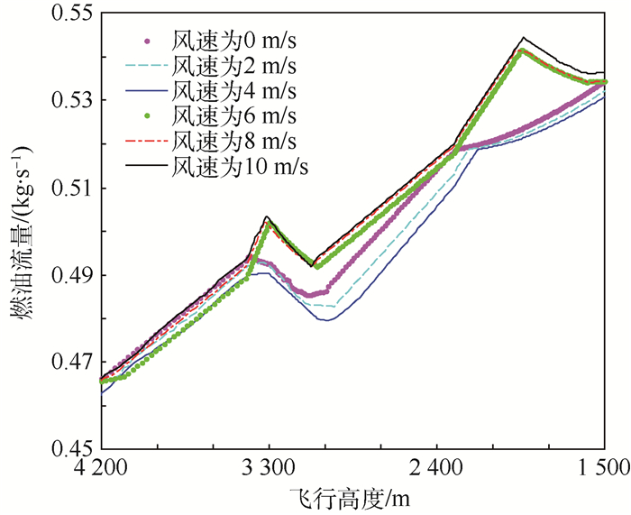 Meteorological factors are significant to aviation flight. To investigate the fuel efficiency in aviation flight, base of aircraft data (BADA) model was combined with meteorological factors, and the aircraft fuel consumption correction model was built. Taking the example of one inbound flight approach at Guangzhou Baiyun Airport, the flight simulation tests were developed and the influence of the change in air temperature, air pressure and wind speed on aircraft fuel efficiency was discussed from two aspects:fuel flow and fuel consumption. The results show that the correlation between meteorological factors and fuel efficiency is obvious. When aircraft flight altitude is certain, if air temperature rises, fuel flow and fuel consumption increase, and fuel efficiency decreases; if air pressure rises, fuel flow changes little but fuel consumption slightly decreases, and fuel efficiency increases; if wind speed rises, fuel flow and fuel consumption firstly decrease and then increase, fuel efficiency increases first and decreases afterwards, and fuel efficiency is the highest when wind speed is 4 m/s. If flight altitude reduces, air temperature and air pressure increase but wind speed increases, fuel flow increases with a slight fluctuation, and fuel efficiency decreases. Fuel consumption in approach can be reduced by about 3% under the best meteorological factors. The study results are significant for improving the fuel efficiency in actual flight.