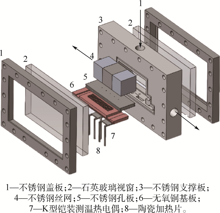 Array jet impingement cooling technology can effectively solve the heat dissipation problem of high heat flux devices. In order to verify the effectiveness of heat transfer enhancement on the impacted surface for optimizing cooling performance of two-phase jet cooling, this article studied the effects of different pin-finned surface structures on the flow and heat transfer characteristics of confined array jet cooling combined with high-speed microscopic imaging methods. Two kinds of pin-finned surface morphology were designed:smooth cutting needle rib (0.6 mm×0.6 mm×1.0 mm) and rough needle rib with porous sintered layer (particle size 73~53 μm). In the experiment, jet cooling heat sink with smooth surface was used as the control group, anhydrous ethanol was used as the working medium, and all the inlet temperatures were the same (20℃). When the flow rate is 7.5 mL/s and the heating heat flux increases from 5 W/cm2 to 100 W/cm2, the heat transfer coefficient of the heat sink continues to increase but the increase rate gradually decreases, and no phase change is observed. Under the experimental conditions of changing the fluid flow rate (fluid Reynold number) with fixed heat flux 82.6 W/cm2, 80.5 W/cm2, when the flow rate decreases from 7.5 mL/s to 1.0mL/s, it can be clearly observed that the working fluid in the jet cavity gradually enters bubble flow, slug flow and annular flow from stratified turbulence flow, which correspond to the initial boiling zone, nuclear boiling zone and membrane boiling zone, respectively.
