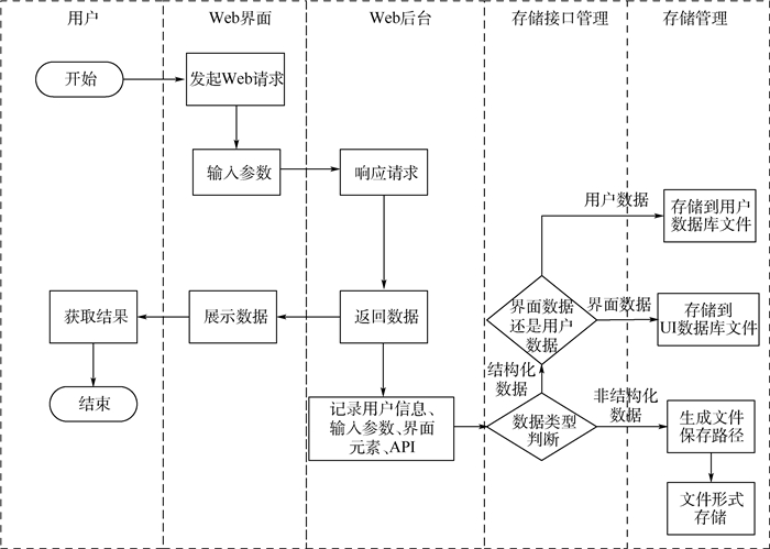 In the distributed complex network environment, collecting the large number of users' behavioral data along with the website data during browsing accurately and comprehensively, efficiently storing them are the basis of user behavior analysis. In order to solve the problems of diversity of data types and storage differences, improve the efficiency of data retrieval, and provide support for the analysis of user behavior for the individual needs of enterprises, a white box mode of user trace collection and storage system is designed in this paper. The users visit the Web server and processes the data of interaction/transaction and user operations, such as pictures, video, description of goods and other types of files. These interfaces and data are called user browsing traces, and operation sequences are the actual user behaviors in order. User data and operation sequence analysis can accurately reflect user characteristics. The collection system is modeled by the interface window tree, providing a unified access interface for data, which is stored in different locations according to the data types. The applications input parameters to specify the storage location to create the database. Through the access interface, the user data can be accessed according to the different file types and requirements. The model solves the problem of capturing, storing, and retrieving traces of Internet-oriented user interaction, and has good accuracy and integrity.
