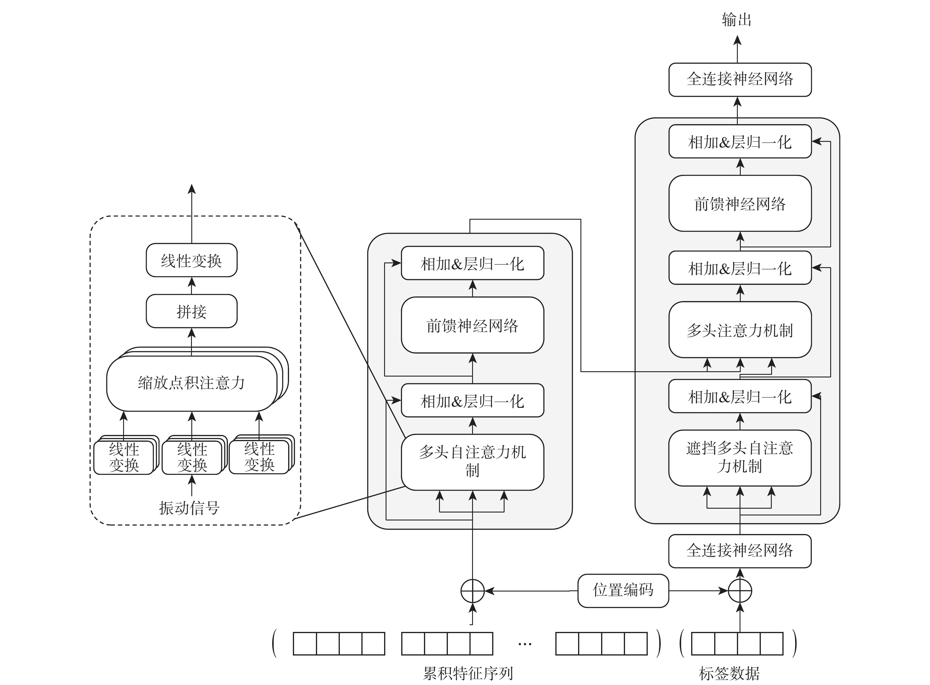 Accurate rolling bearing remaining useful life (RUL) prediction is extremely important to assure the machine’s safety and decrease damage repair. To improve the accuracy of rolling bearing RUL prediction, proposed a bearing RUL prediction method based on the Transformer model, made full use of its self-attention mechanism and the advantages of encoder-decoder structure, solved the memory degradation problem caused by the too-long sequence in bearing RUL prediction, found out the dependent relationship between the input feature and the bearing degradation degree. Meanwhile, trigonometric function transform and cumulative transform are used to correct the feature's monotony and tendency, representing the rolling bearing degradation process better. The average absolute error of RUL prediction based on the Transformer model is reduced by 9.25%, 28.63%, and 34.14%, while the average ss were increased by 2.78%, 19.79%, and 29.38%, according to experimental results on the PHM2012 dataset. Experimental results on the XJTU-SY dataset showed that compared with other prediction methods, the proposed model is reduced by 17.4%, and the average ss were increased by 18.6%, which indicates higher feasibility and superiority.