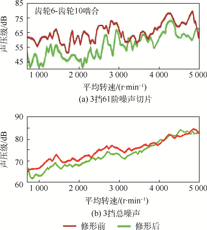This paper discusses the vibration mechanism of gear transmission and modification methods to reduce vibration and noise with a specific automatic transmission as the research object. Using SimulationX and test methods, the gears that have the most contribution to system vibration can be found. The internal excitation of the helical gear was analyzed with the method of finite element simulation, including transmission errors, contact spots, meshing impact and thermo-elastic deformation. Considering the minimum fluctuation amplitude of the transmission errors, meshing impact elimination and the optimal contact status as a comprehensive objective, the optimal gear modification was obtained after comparison with plenty of simulation results. Based on the test results after modification, it is verified that the proposed modification scheme can optimize the transmission status and further effectively reduce the vibration and noise of transmission.