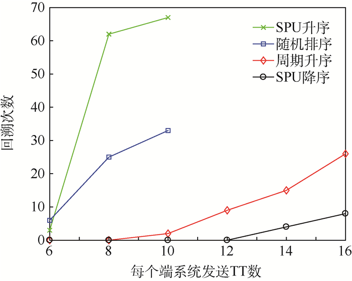The time-triggered Ethernet (TTE) static scheduling table is generated based on the satisfiability modulo theories (SMT). If the time-triggered (TT) traffic set is of a large scale, the subsets of traffic need to be selected in batches into the incremental scheduling table generation, where the order of selection has a significant impact on the calculation time consumption. An incremental time-triggered scheduling table generation method based on schedulability ranking is proposed and formed:strict-periodic utilization (SPU) is used to measure the schedulability of TT traffic; TT traffic subsets are selected in batches according to scheduling difficulty descending order, and solved by SMT subset by subset in turn; meanwhile, schedulability check and contention-free constraints reduction are involved. During the solving process, a back-track operation is performed in the case of partly-non-schedulable situation; meanwhile, the interference time is used as the joint constraint condition of the scheduled set on the unscheduled set, and the number of constraints between the two sets is reduced on a large scale, which further improves the solving efficiency. Case study shows that this method's growth rate of the backtracking times with the scale of the problem is lowered down significantly, compared with incremental scheduling method using random order, period ascending order, or scheduling difficulty ascending order.