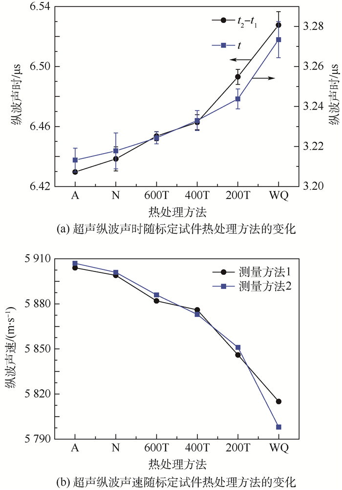 Hardness is one of the important indexes of mechanical performance of materials, and employing ultrasonic nondestructive testing method for hardness evaluation faces many challenges now. In this paper, through setting up high-precision ultrasonic wave transmission time measurement system, the longitudinal wave propagation time in the thickness direction of different heat treated 45 steel specimens was measured by pulse reflected echo method, and the longitudinal wave velocity was calculated. Simultaneously, the gate signal measurement methods were changed, and the effects of different heat treatment and gate signal measurement methods on hardness evaluation by the longitudinal wave velocity were studied.On this basis, the mapping relationship among material hardness, microstructure and longitudinal wave velocity was obtained, and the calibration model for evaluating the hardness of 45 steel specimens by longitudinal wave velocity was established and verified. The hardness prediction error by the calibration model meets the error requirement of 10% for engineering application.
