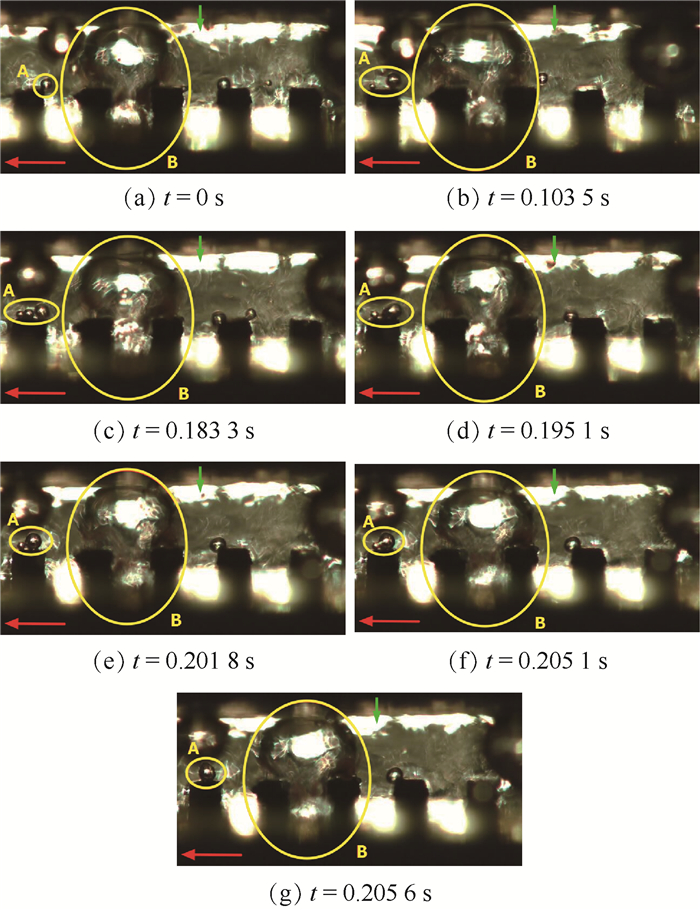 Array jet impingement cooling technology can effectively solve the heat dissipation problem of high heat flux devices. In order to verify the effectiveness of heat transfer enhancement on the impacted surface for optimizing cooling performance of two-phase jet cooling, this article studied the effects of different pin-finned surface structures on the flow and heat transfer characteristics of confined array jet cooling combined with high-speed microscopic imaging methods. Two kinds of pin-finned surface morphology were designed:smooth cutting needle rib (0.6 mm×0.6 mm×1.0 mm) and rough needle rib with porous sintered layer (particle size 73~53 μm). In the experiment, jet cooling heat sink with smooth surface was used as the control group, anhydrous ethanol was used as the working medium, and all the inlet temperatures were the same (20℃). When the flow rate is 7.5 mL/s and the heating heat flux increases from 5 W/cm2 to 100 W/cm2, the heat transfer coefficient of the heat sink continues to increase but the increase rate gradually decreases, and no phase change is observed. Under the experimental conditions of changing the fluid flow rate (fluid Reynold number) with fixed heat flux 82.6 W/cm2, 80.5 W/cm2, when the flow rate decreases from 7.5 mL/s to 1.0mL/s, it can be clearly observed that the working fluid in the jet cavity gradually enters bubble flow, slug flow and annular flow from stratified turbulence flow, which correspond to the initial boiling zone, nuclear boiling zone and membrane boiling zone, respectively.
