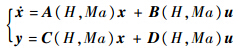 当飞行器处于不同状态点时,高度H、马赫数Ma均存在不同程度的差异,进而造成稳定状态点的小偏离线性化模型的差异,即线性空间模型可表示为高度、马赫数的函数:
