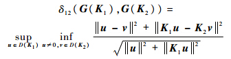 定义1 Hilbert空间内两个闭合算子K1和K2的间隙定义为