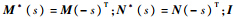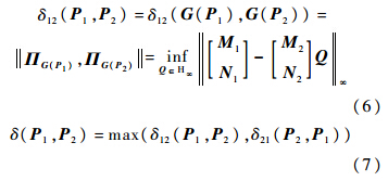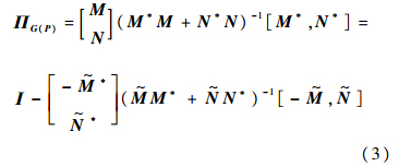 定义2 假设P∈Rn×m(s),并且有(M,N)与( )分别为被控对象P的左右互质分解,则有正交投影矩阵为
